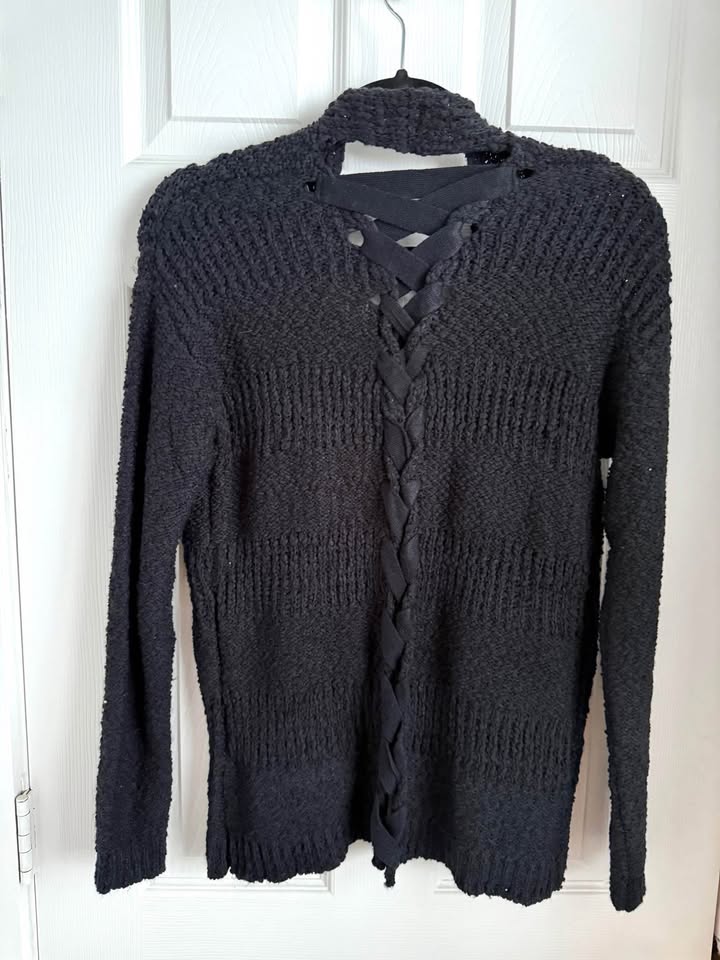 Never worn. Soft cozy knit. Lace up detail at back. Purchased new from Target. Boxy fit, tag says XS but could also fit small or medium. Smoke free home.
