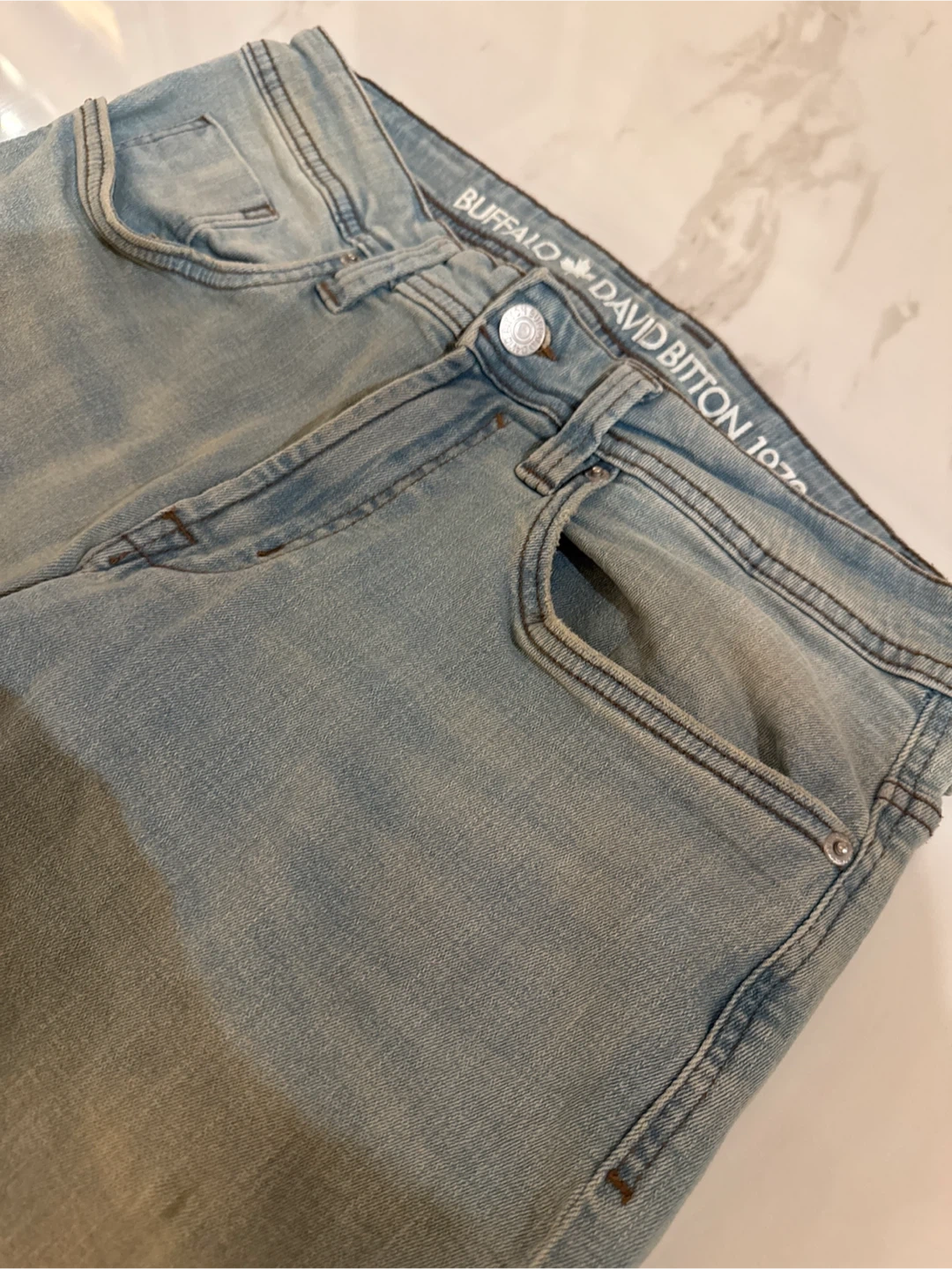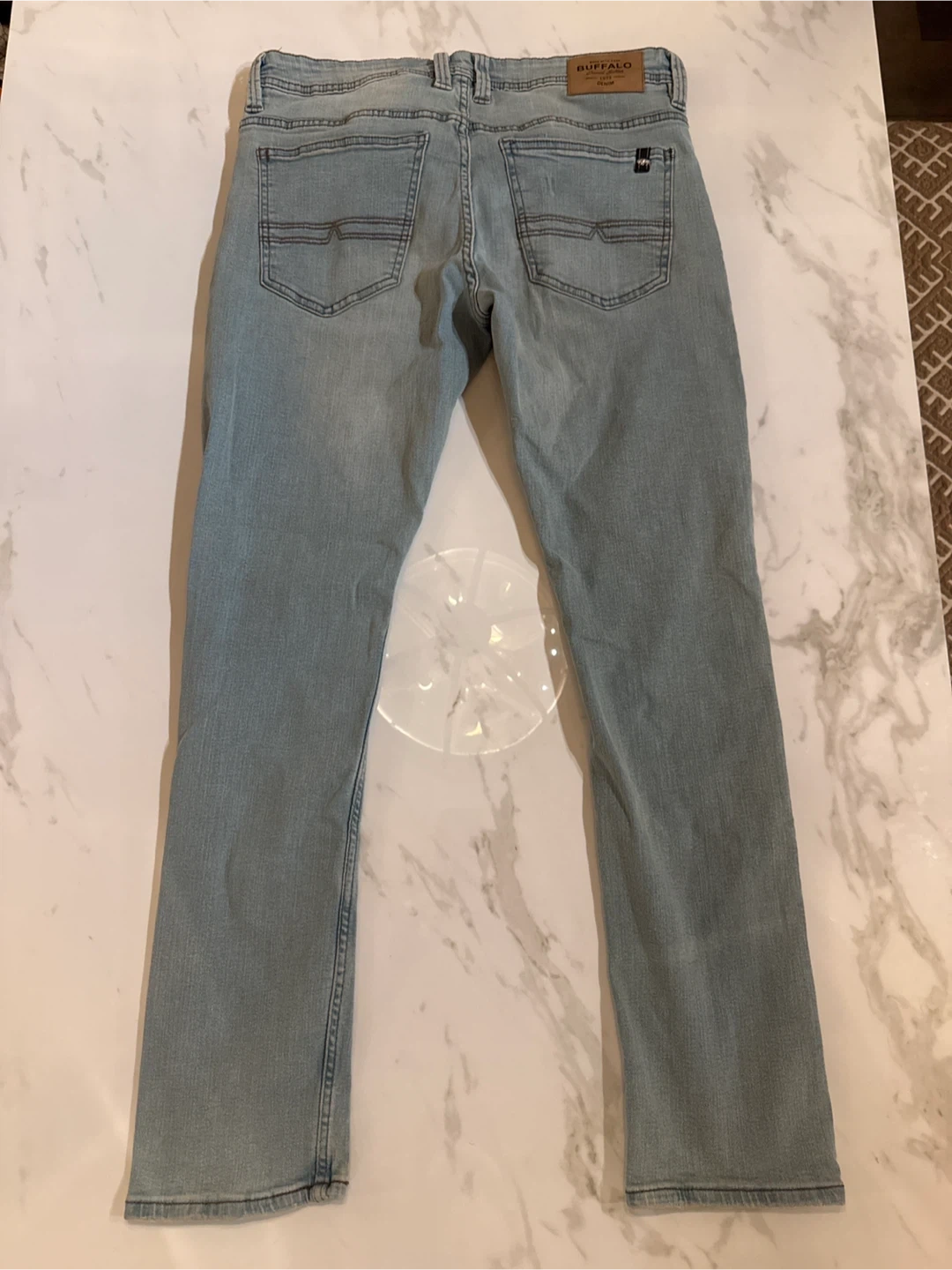 Selling a pair of Buffalo David Bitton Evan-X jeans in size 32. They are a light wash and in great condition. Perfect for everyday wear!