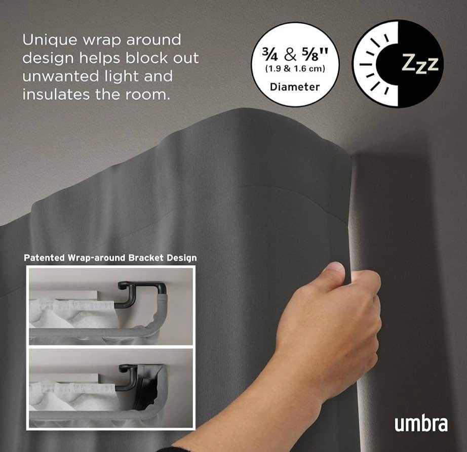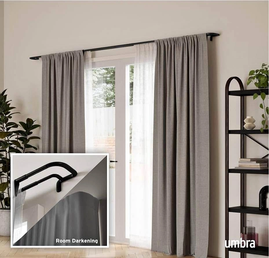 Perfect for hanging blackout curtains for sleeping and sheers for the day at the same time.