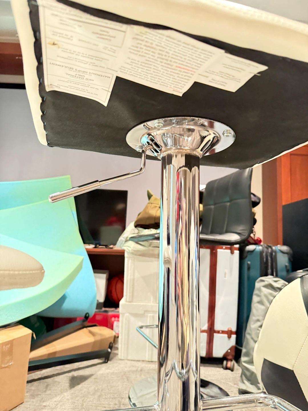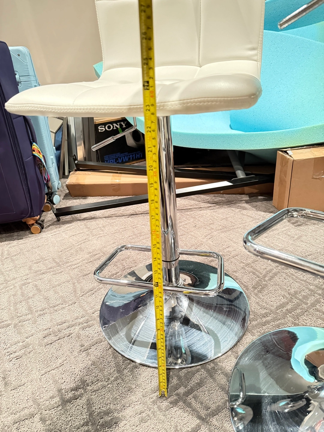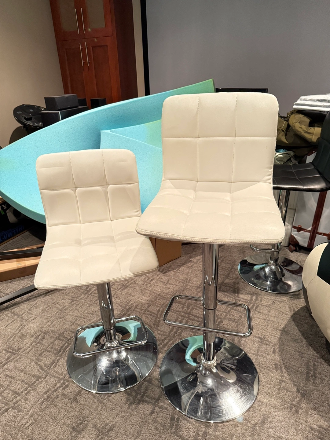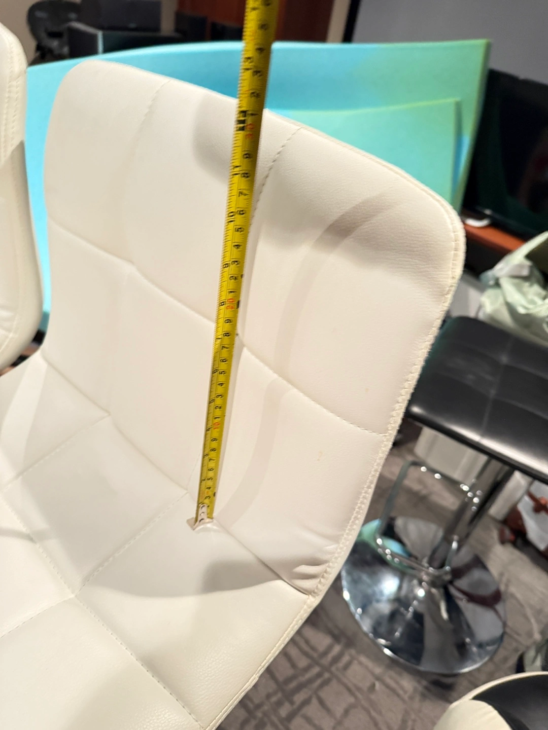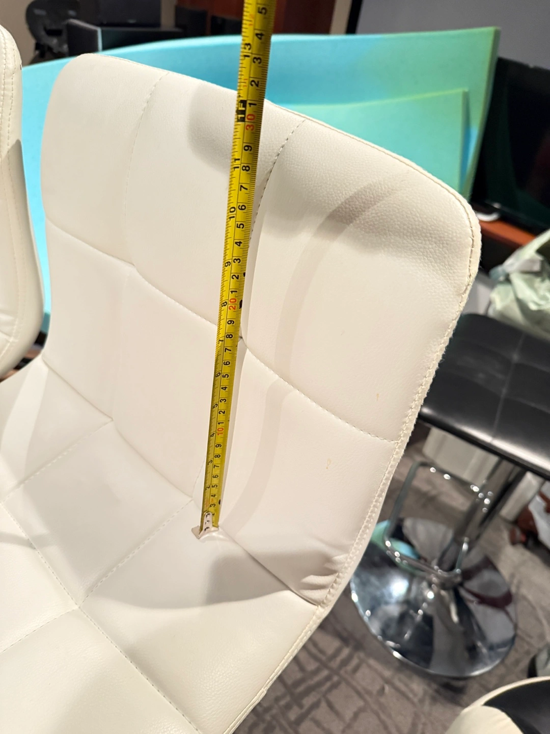 481Selling a set of two bar stools in great condition. They feature a clean, white faux leather seat with a stylish, modern design. The base is chrome. The seat width is approximately 17 inches. Perfect for adding a touch of elegance to your kitchen or bar area!