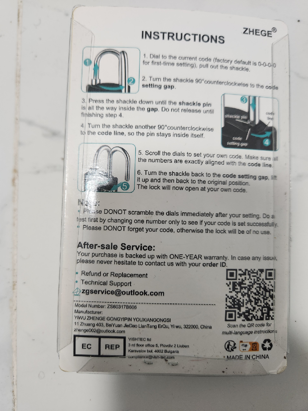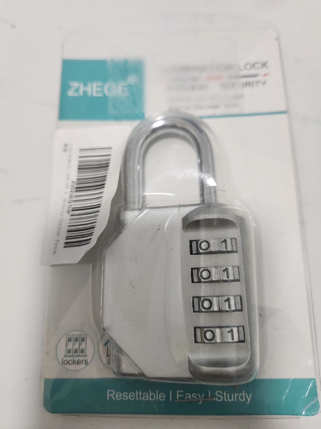 Selling a ZHEGE combination lock that's resettable, easy to use, and sturdy. It's perfect for lockers and keeping your belongings safe. The lock is in great condition and comes in its original packaging.