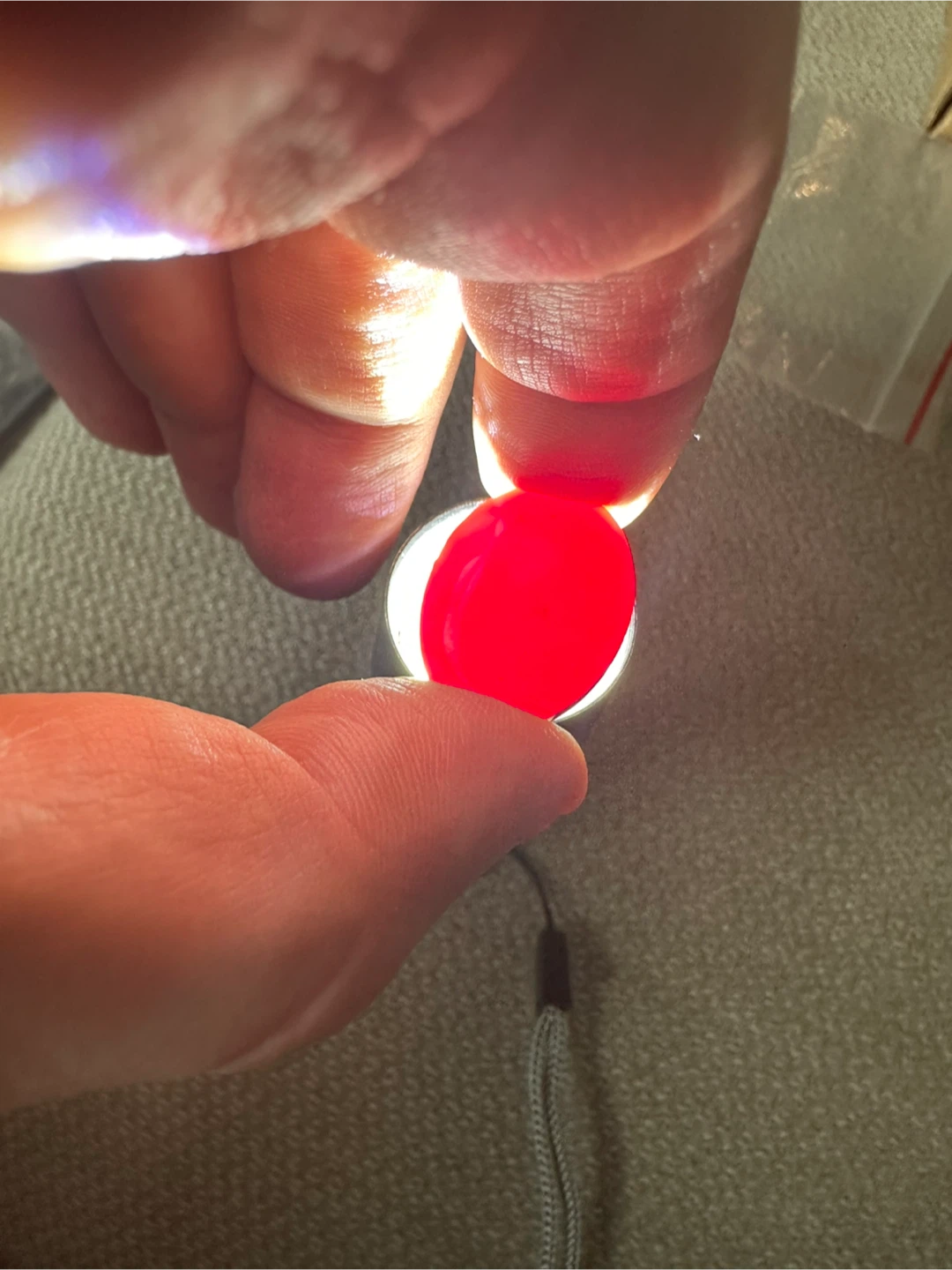 The stone glows in pure red (pigeon-blood) if exposed to light! 💡