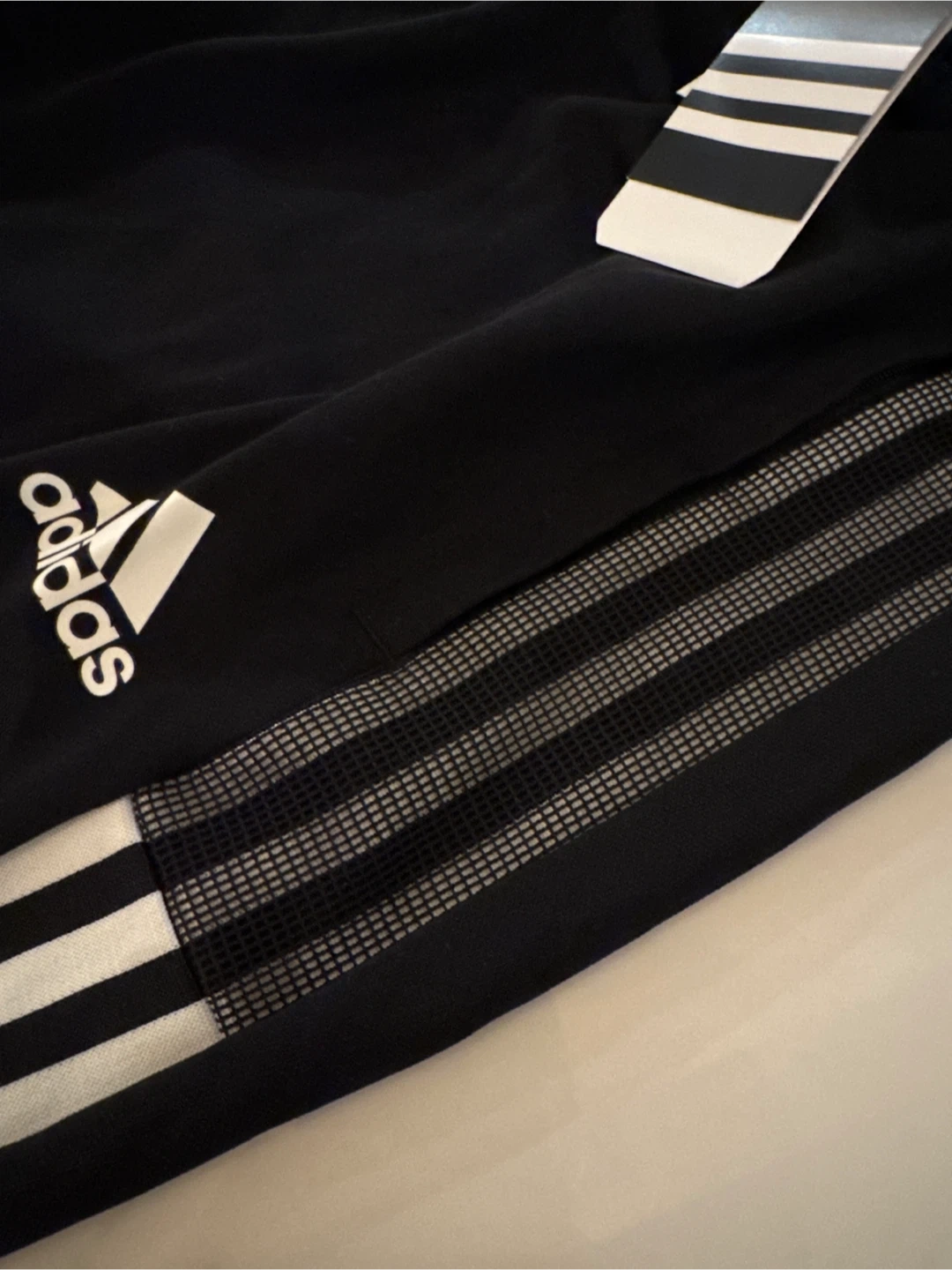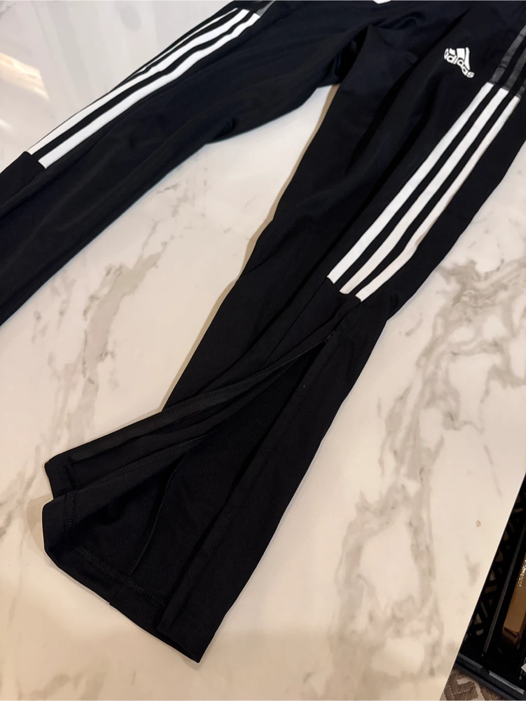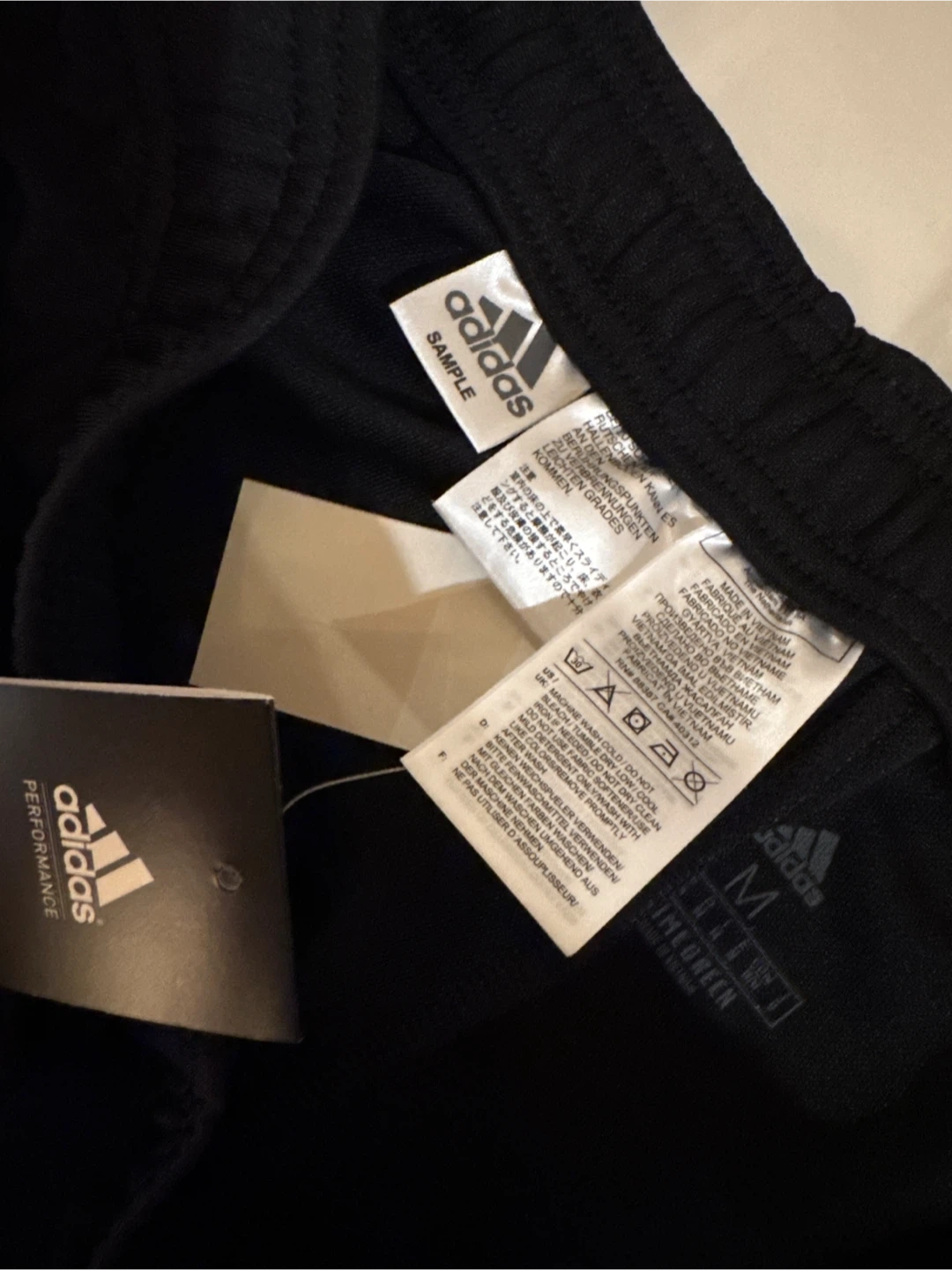 With tags. Adidas black track pants with the classic three stripes! These are a size medium but fit large and in new condition. Perfect for sports or just lounging around the house