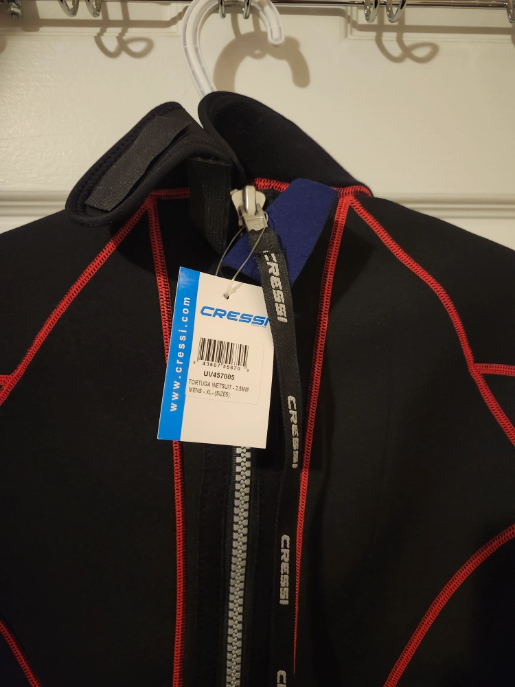 25Selling a Cressi Tortuga men's wetsuit in size XL. It's black with red accents. Great for diving or snorkeling! Small fit, size M-L!