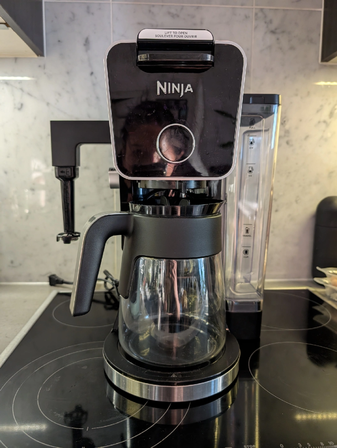 Selling a Ninja coffee maker in great condition! It has a spot for a travel mug and a regular coffee pot. It's perfect for brewing a single cup or a whole pot