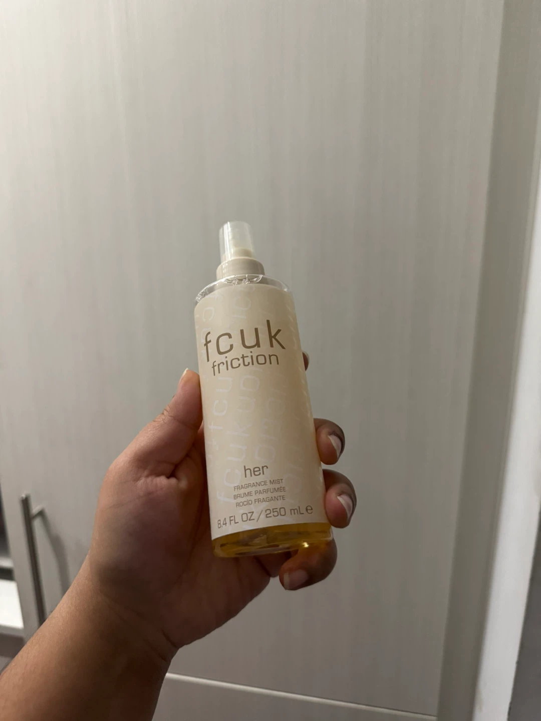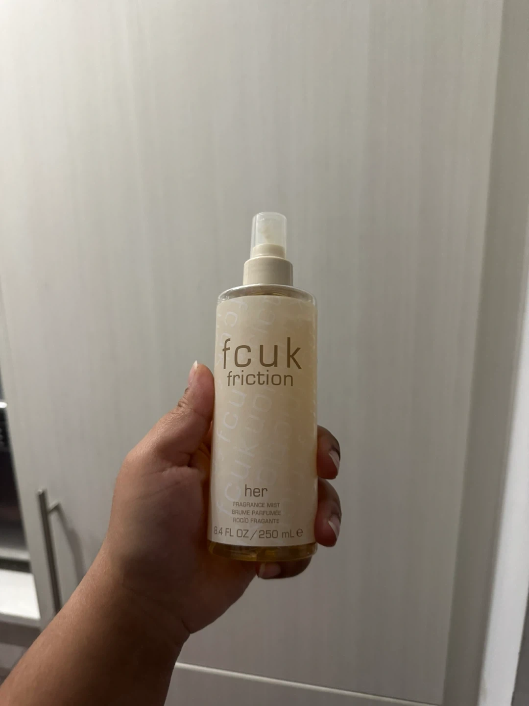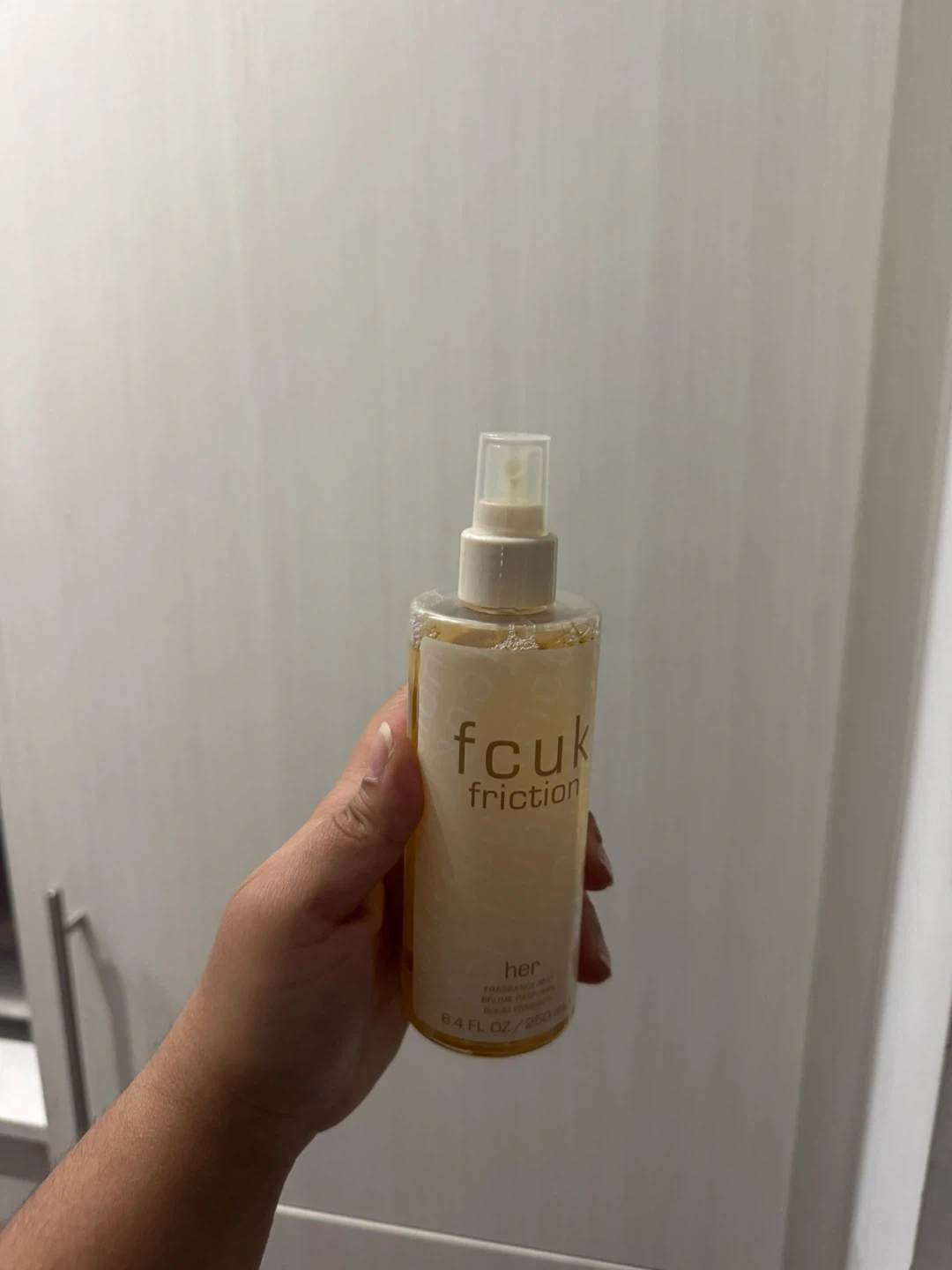 Selling a bottle of FCUK Friction Her fragrance mist. It's a 250 ml bottle, perfect for everyday use or to keep in your bag for a quick refresh. A lovely fragrance mist to add to your collection
