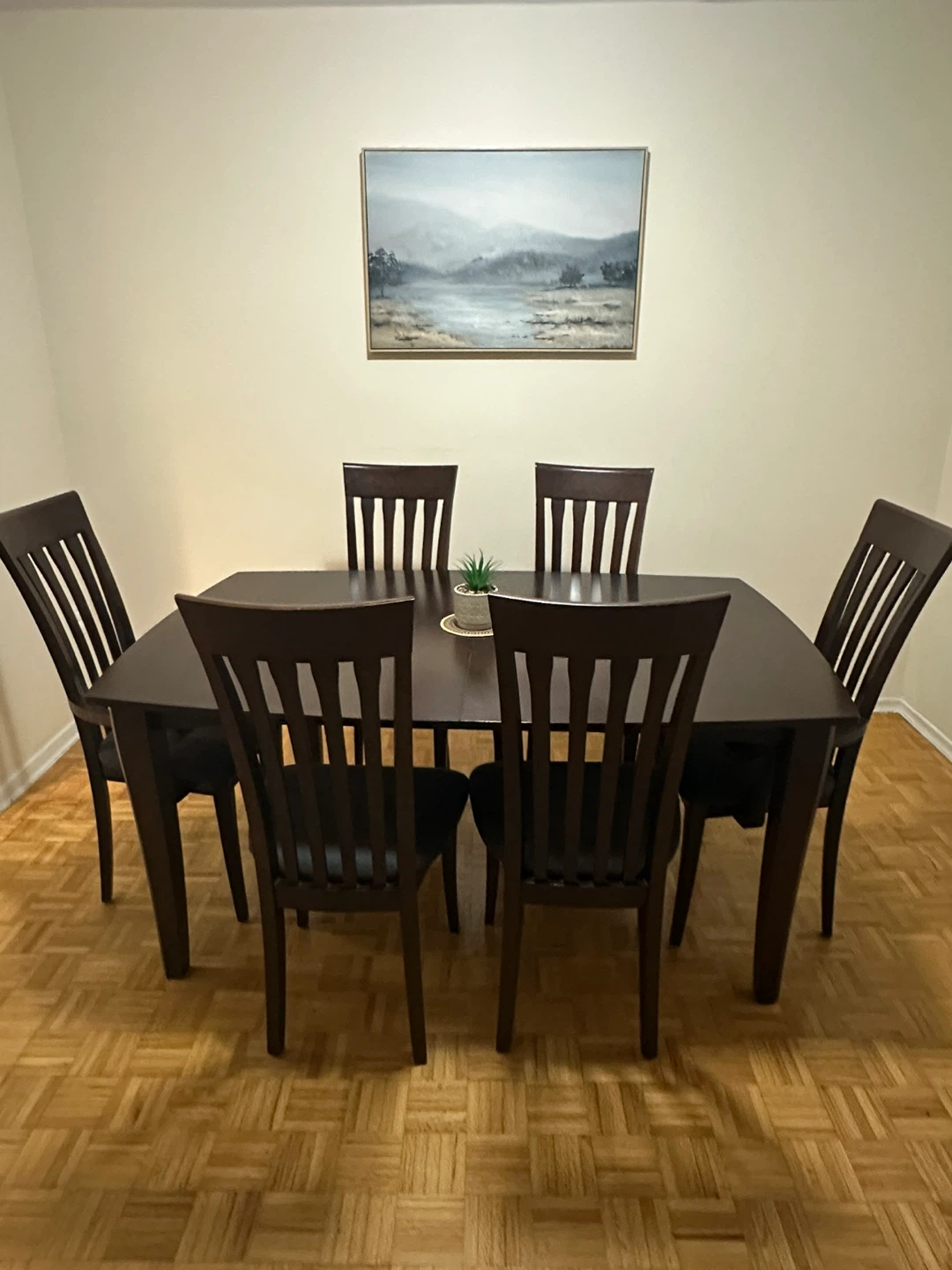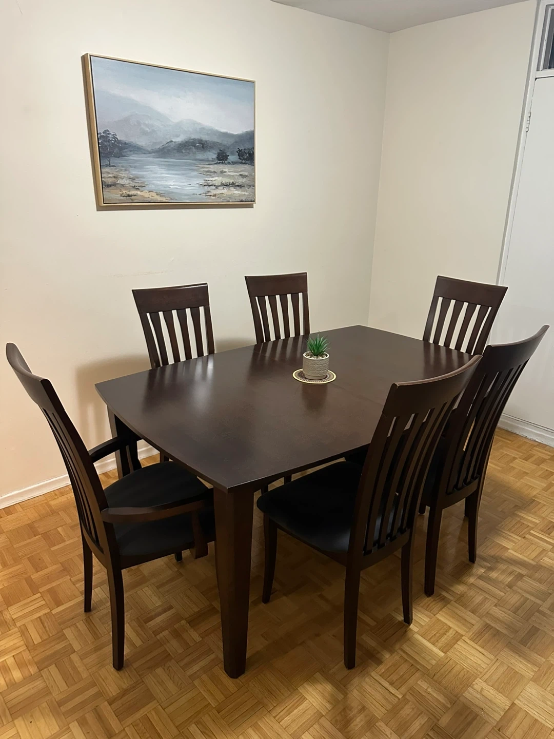 We’re moving out, so selling our beautiful solid wood dining table set.
