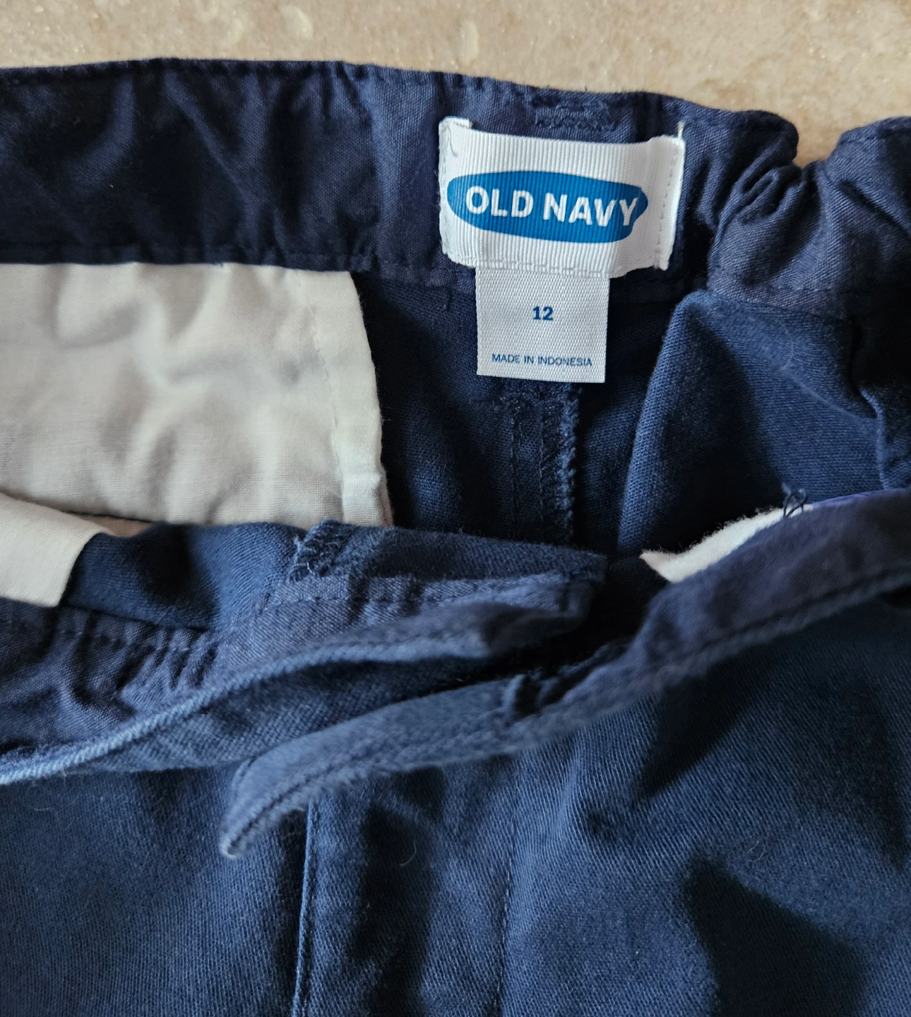 Boys Size 12 Old Navy Chino Pants (Navy Blue). In excellent used condition. -front pockets, button/zipper closure -adjustable waist -elastisized cuffs Milton pick up, cash only, no holds.