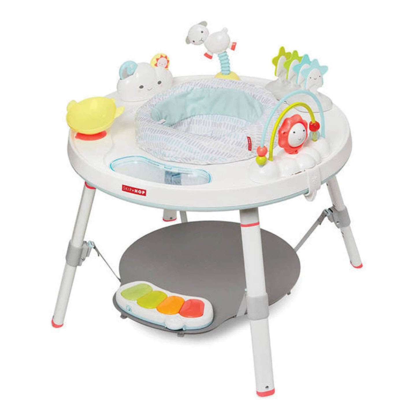 Selling a gently used Skip Hop silver lining cloud 3-stage Activity Centre! It's in great condition and ready for a new little one to enjoy. This activity centre is designed to grow with your baby, offering a variety of engaging toys and activities to stimulate their development. It features a 360-degree rotating seat, a light-up piano, and lots of other fun features to keep your baby entertained