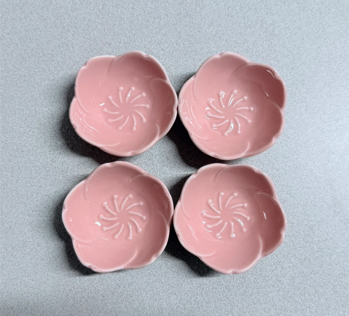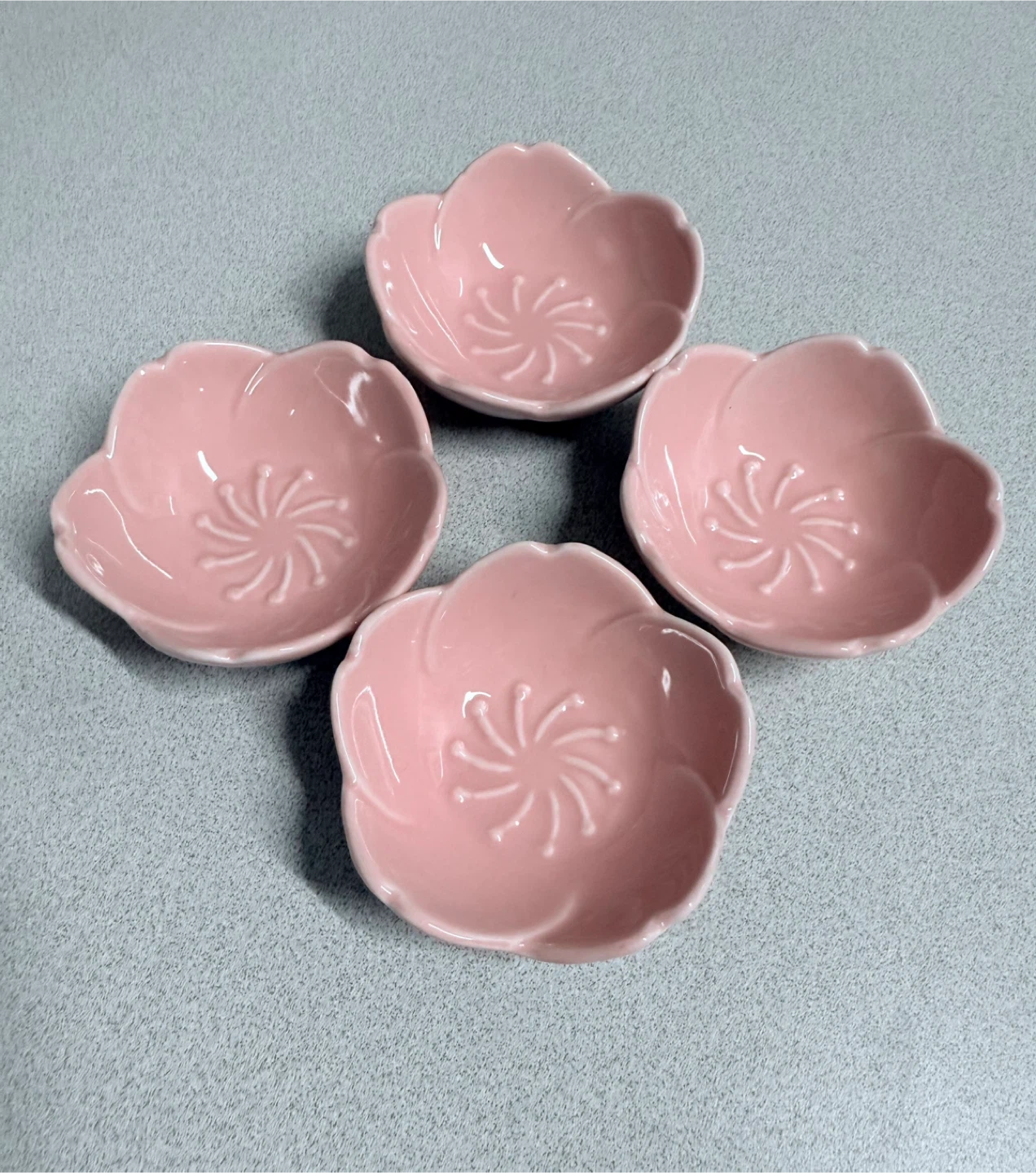 Selling a set of 4 adorable pink ceramic Sakura sauce dishes! They're in the shape of cherry blossoms and would be so cute for holding your favorite sauces, like soy sauce for your sushi. They're in excellent condition and ready for a new home.