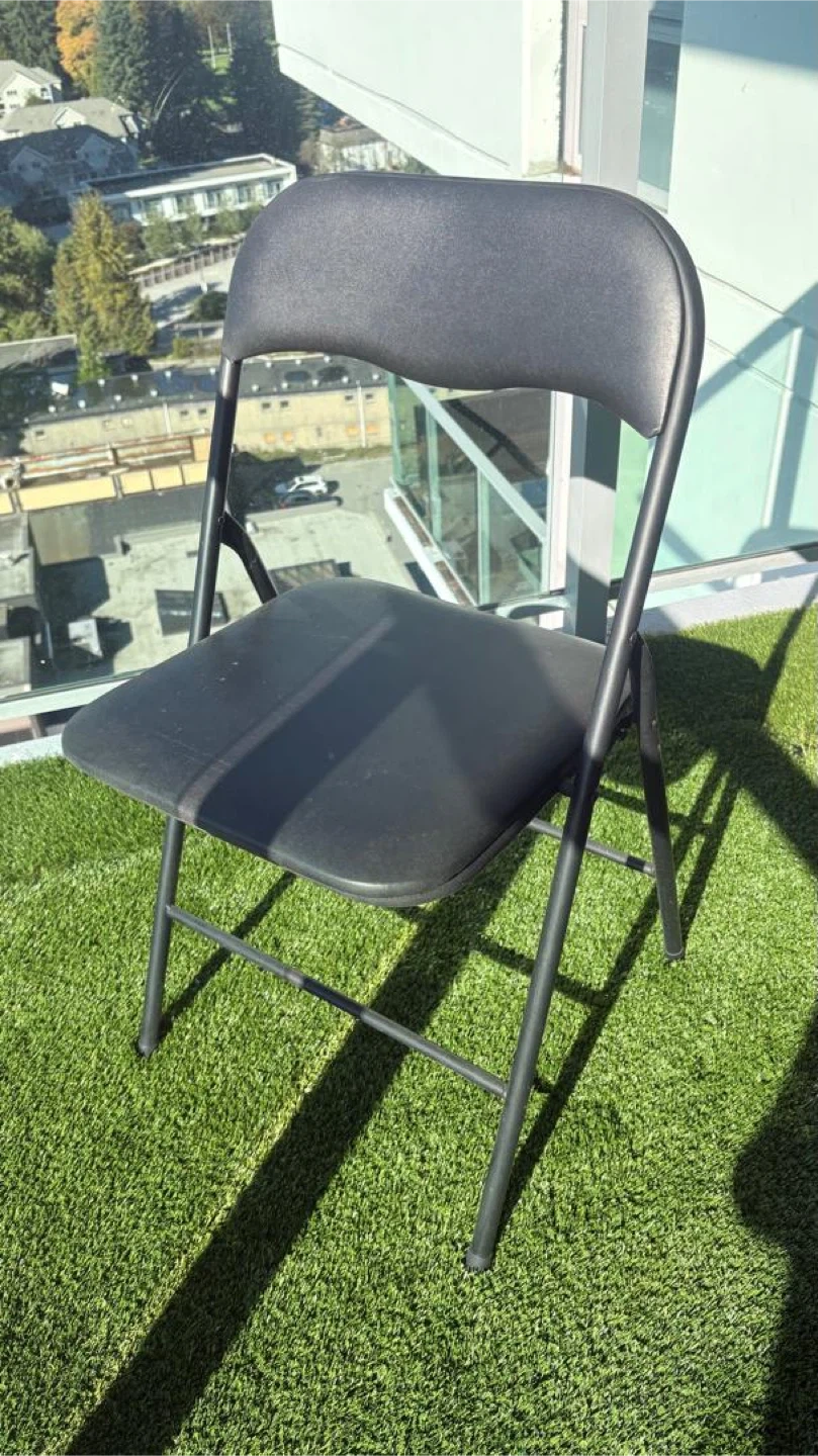 Selling a handy black folding chair from IKEA! It's in great shape and perfect for extra seating when you have guests over or for small spaces where you need a chair that can be easily stored away when not in use