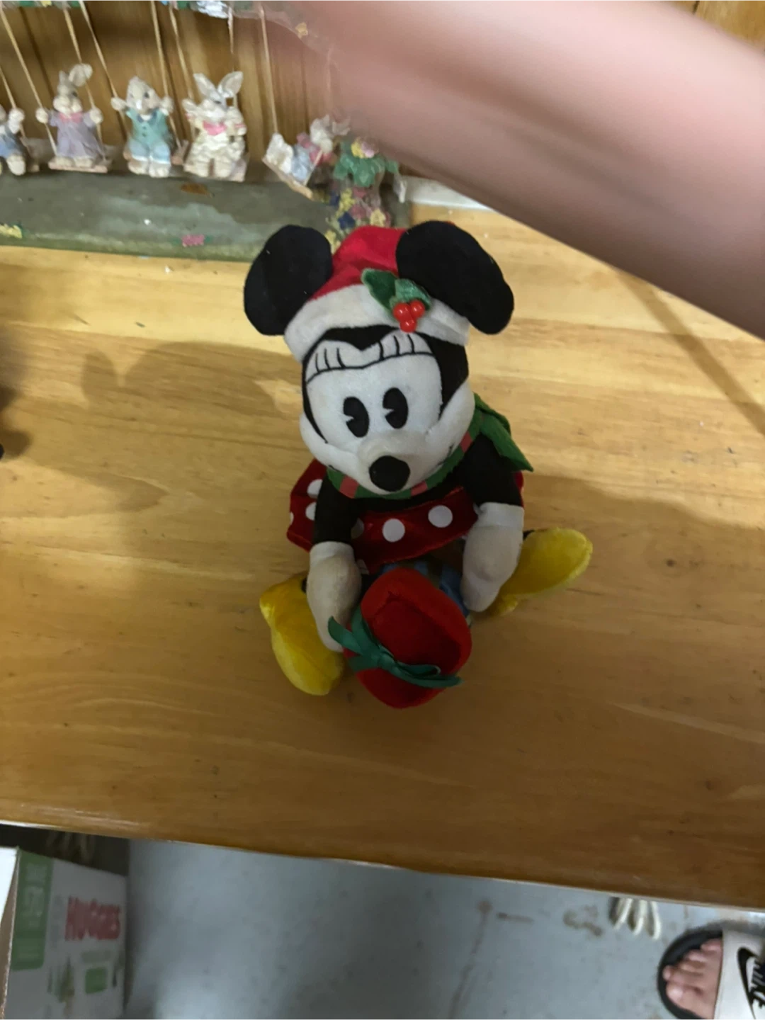 Selling a cute Minnie Mouse plush dressed in a Christmas outfit! This adorable Minnie is ready to spread some holiday cheer. She's in great condition and would be a perfect addition to any Disney collection or a festive decoration for the holidays