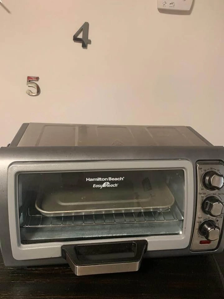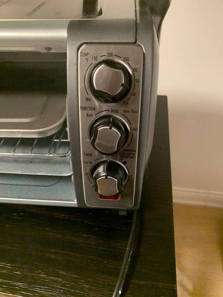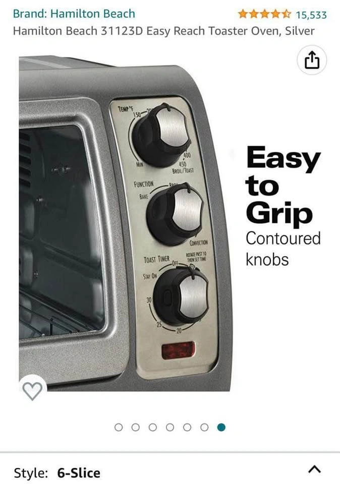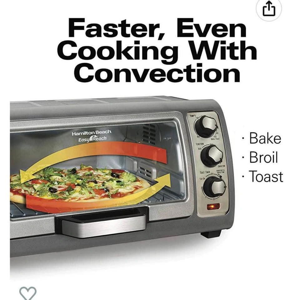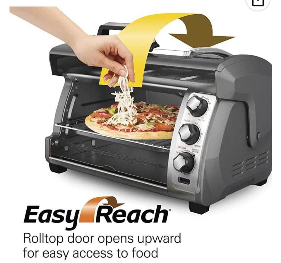 1000+Sure-Crisp convection evenly cooks foods and browns foods with little or no oil, making this air fryer toaster oven ideal for fries, chicken wings, vegetables, and more. The specially designed glass door on the toaster oven air fryer combo makes it easier to add and remove foods from the oven. It's also easy to check foods as they're cooking. This toaster oven has plenty of room for 6 slices of toast, a 12" pizza, or a 9" x 11" baking pan. It has 2 rack positions to accommodate a variety of foods. Toast, air fry, bake or broil in this versatile toaster oven. It has 1400 watts of cooking power. The 30-minute timer with ready bell helps you keep track of cooking time. The Stay On setting makes it easy to extend cooking time when needed, while automatic shutoff provides peace of mind.