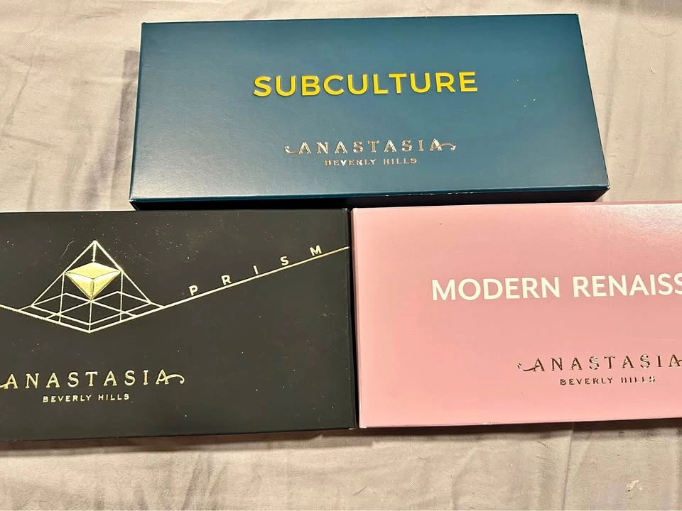 Anastasia Beverly Hills Eyeshadow Palettes in Modern Renaissance, Subculture (LE) and Prism (LE). All BNIB. $45 EACH or $120 for all 3! Modern renaissance alone is $60 at Sephora.