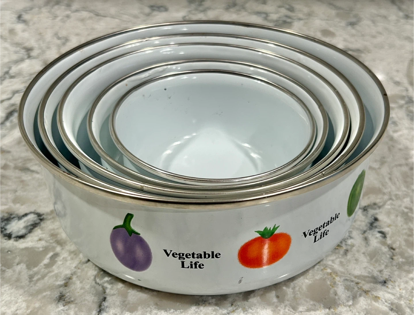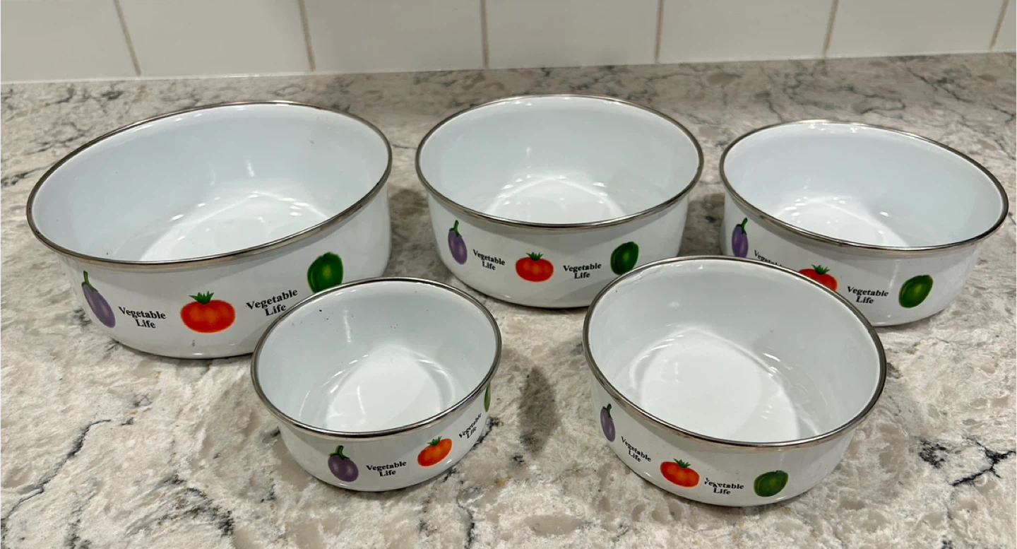 Vegetable Life Enamelware Nesting Bowls - 5 Piece Set