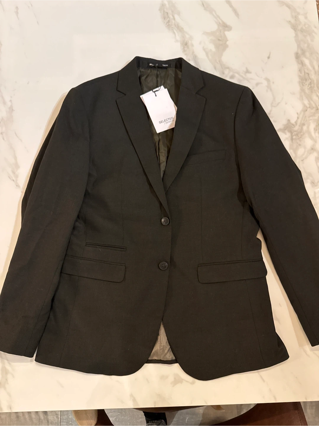 Selling a gently used dark olive blazer from SELECTED HOMME. It's a size 40R and in great condition. The blazer is a slim fit and responsibly crafted. Perfect for dressing up or down!
