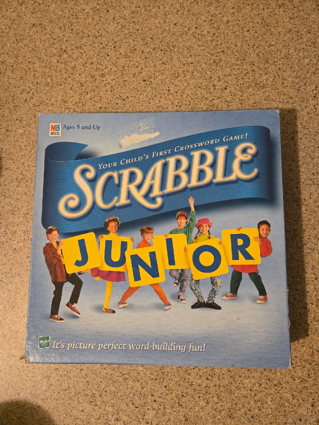 Selling a Scrabble Junior game, perfect for kids aged 5 and up! It's a great way to introduce your child to crossword puzzles and word-building fun