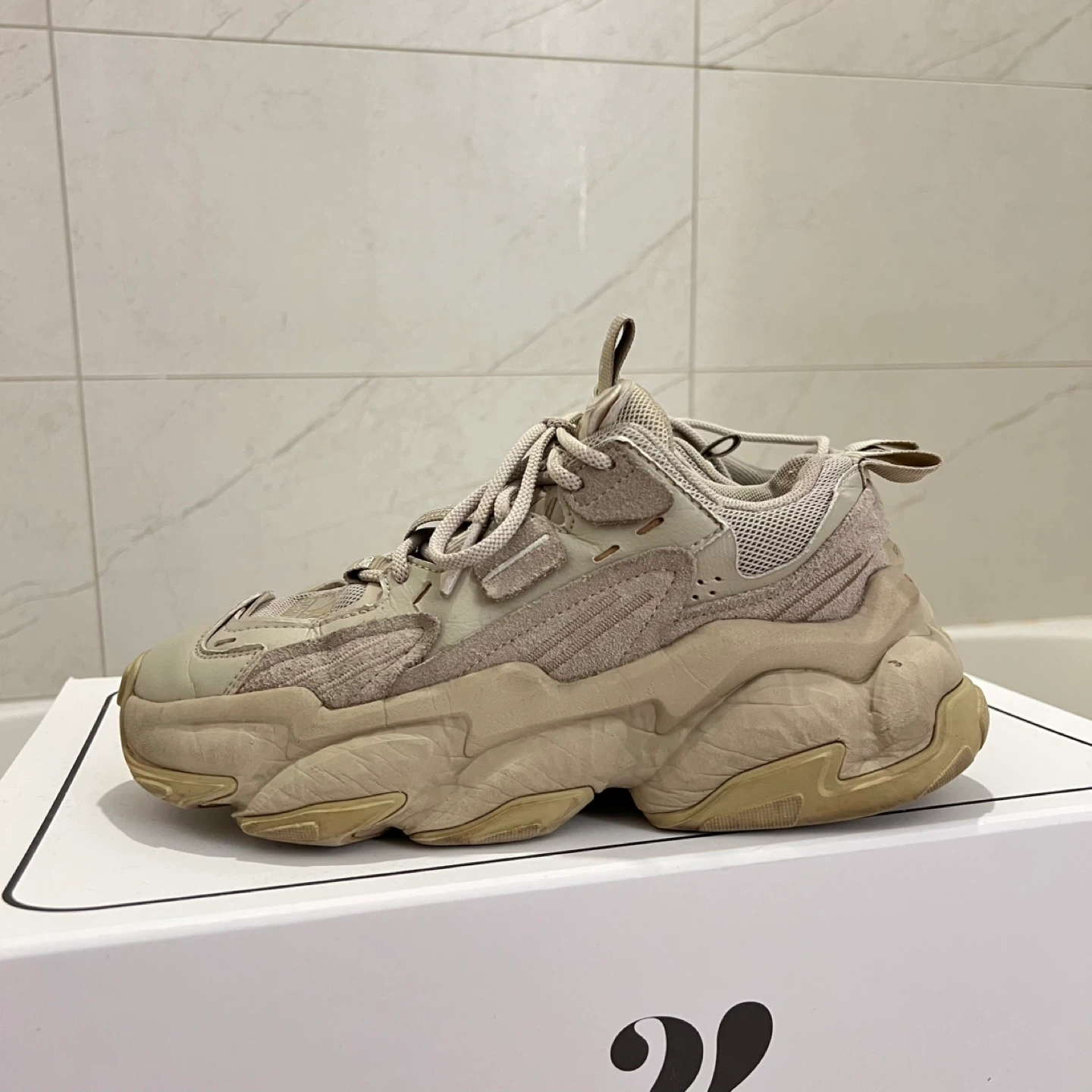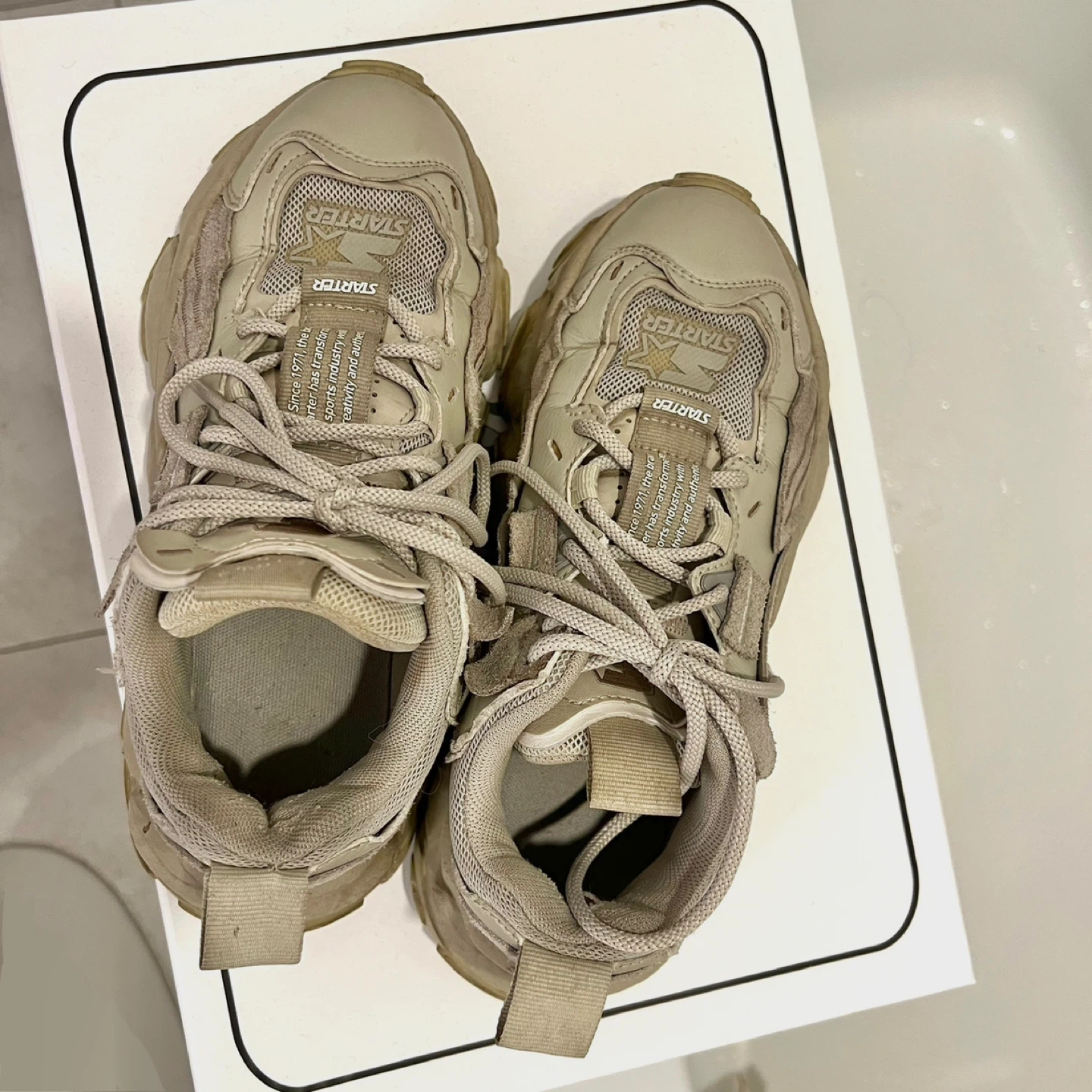 Selling a pair of Starter Low-Top Retro Dad Shoes in a stone/beige colour.