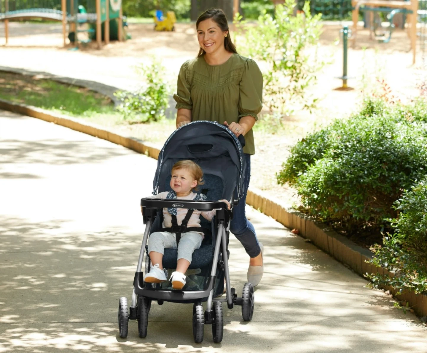 Graco Comfy Cruiser Stroller Graco Comfy Cruiser Stroller makes it easy and convenient to get out with your little one. Includes a unique body support with fashionable colour and quality materials making the seats extra-soft as your child grows. The lightweight stroller has convenience features like a one-hand, self-standing fold, parent's tray with storage and two cup holders, and an extra-large storage basket. Comfort for your baby and convenience for you, the Comfy Cruiser Stroller is a terrific choice! - Collapsible and foldable for more storage - Extra large storage basket at the bottom of stroller - Parents tray with 2 cup holders - Baby tray for snacks, food, toys with cupholder * One-hand, self-standing fold opens and closes easily and leaves the other hand free for baby Can be picked up or delivered Cheap - message me