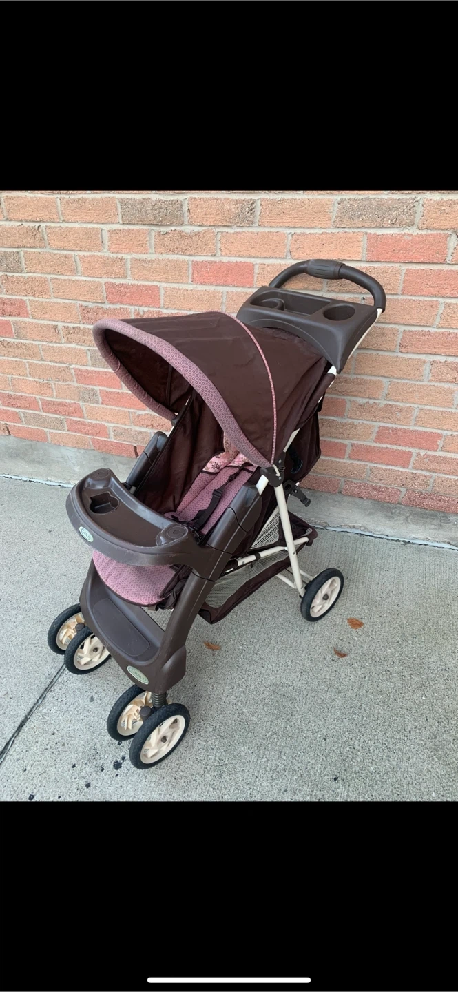 Graco Comfy Cruiser Stroller Graco Comfy Cruiser Stroller makes it easy and convenient to get out with your little one. Includes a unique body support with fashionable colour and quality materials making the seats extra-soft as your child grows. The lightweight stroller has convenience features like a one-hand, self-standing fold, parent's tray with storage and two cup holders, and an extra-large storage basket. Comfort for your baby and convenience for you, the Comfy Cruiser Stroller is a terrific choice! - Collapsible and foldable for more storage - Extra large storage basket at the bottom of stroller - Parents tray with 2 cup holders - Baby tray for snacks, food, toys with cupholder * One-hand, self-standing fold opens and closes easily and leaves the other hand free for baby Can be picked up or delivered Cheap - message me