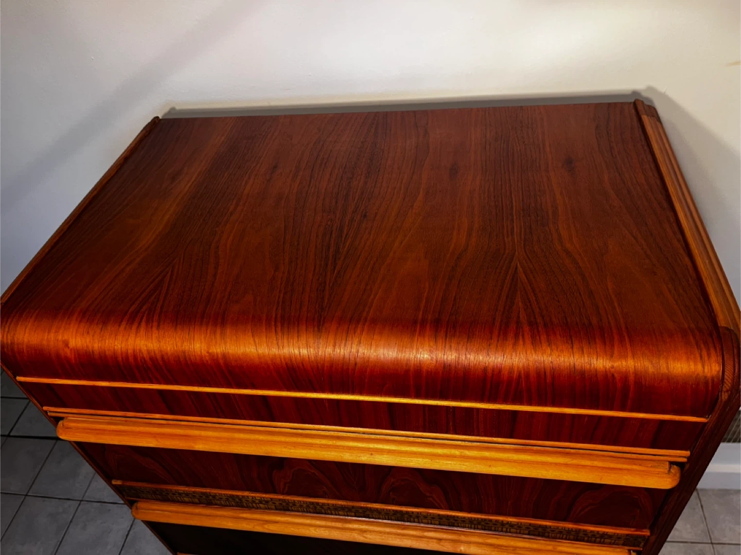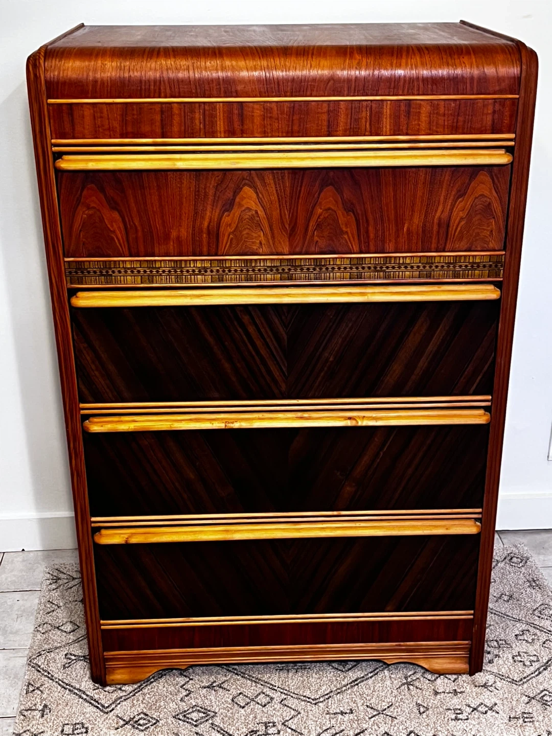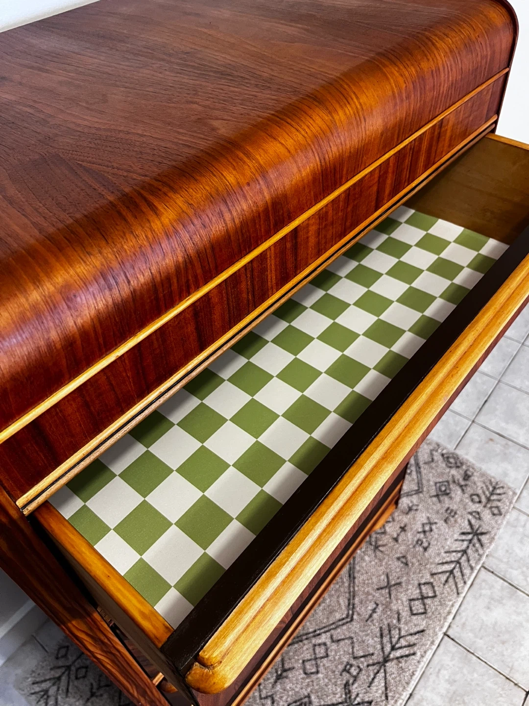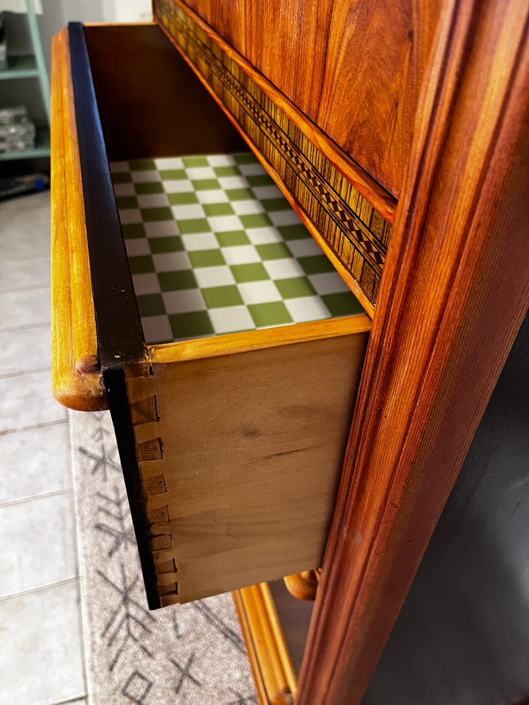 This vintage beauty has been completely restored head to toe. Beauty solid construction with dove tailed, lined smooth drawers ! 🤩