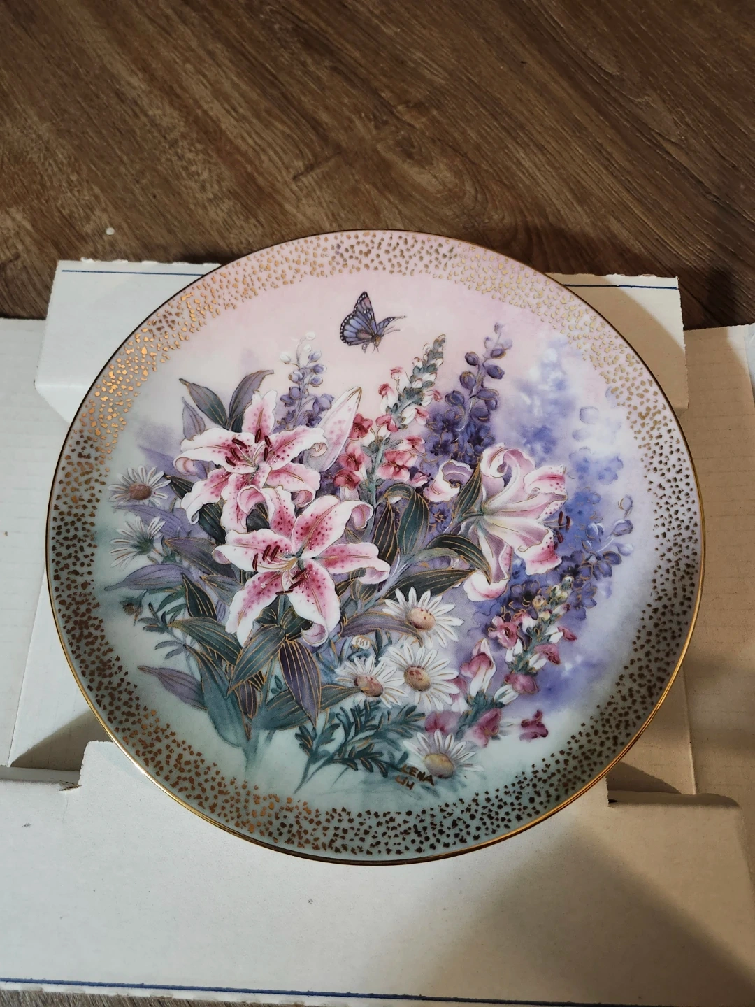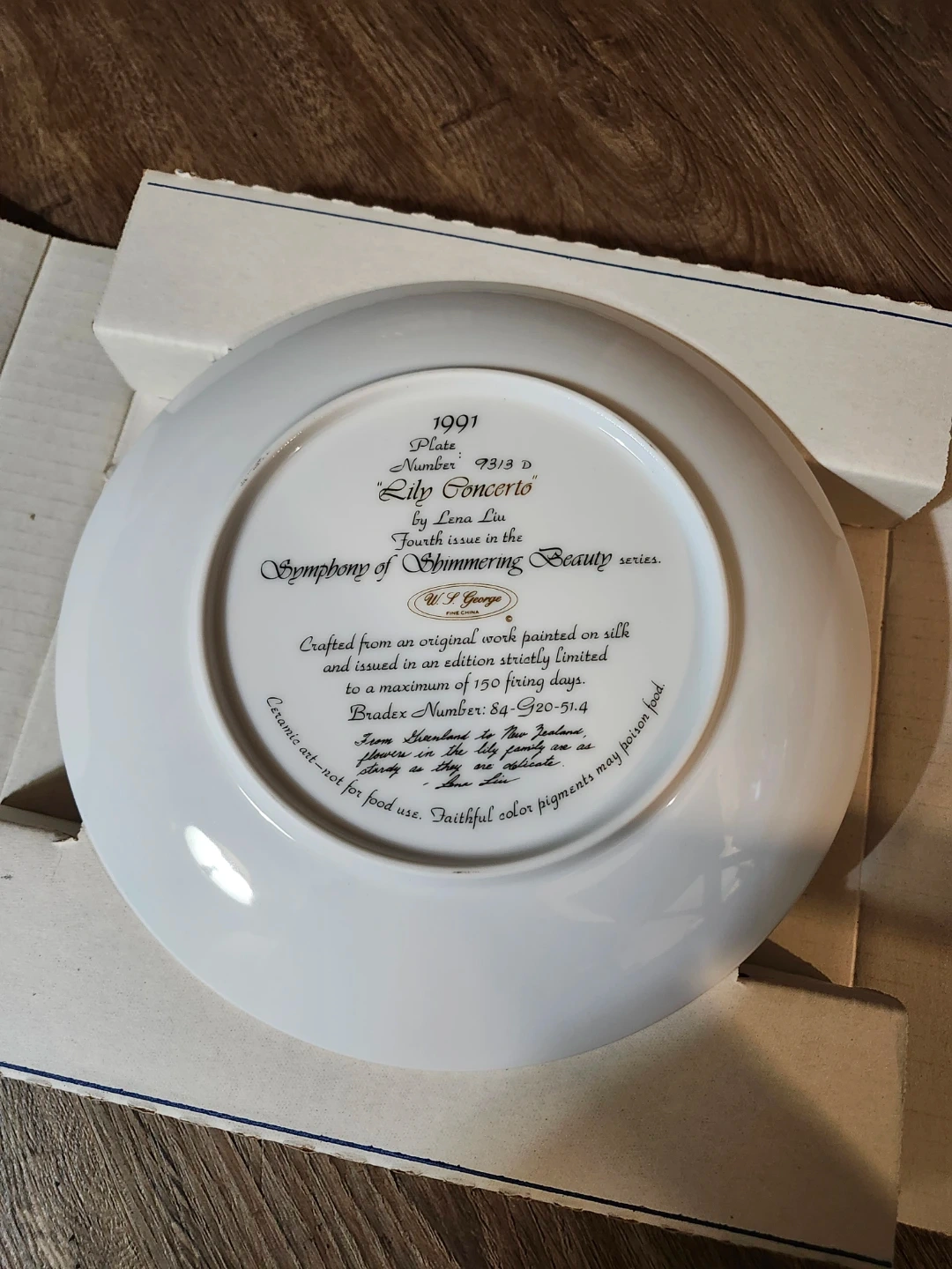 This is the fourth issue in the Symphony of Shimmering Beauty series. It's crafted from an original art painting on silk and is strictly limited to a maximum of 14 firing days. This collector plate is not for food use, and its faithful color pigments may poison food.