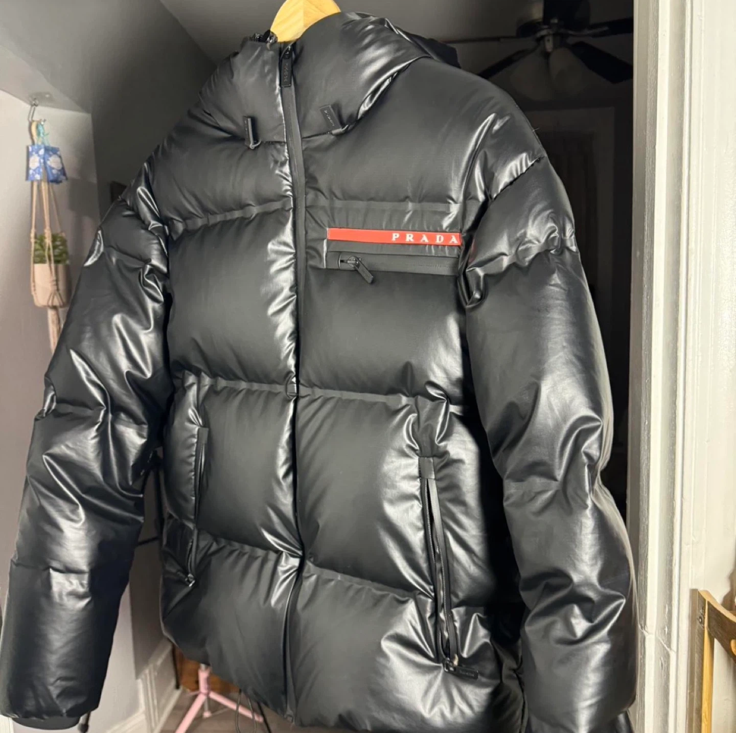 Selling a stylish Prada puffer jacket in black. It's brand new with tags and ready to keep you warm!