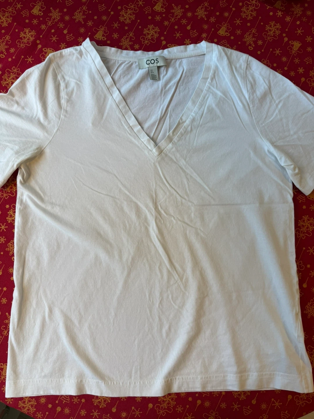 Selling a simple and classic white V-neck T-shirt from COS. It's a size small and in great condition, worn few times.
