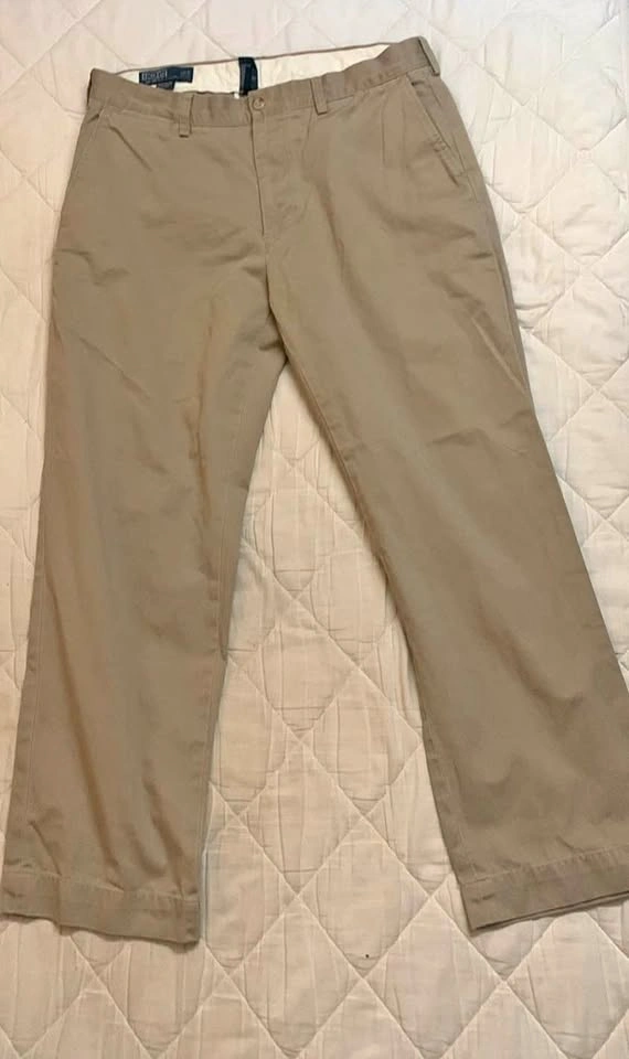 Authentic 90s Polo Ralph Lauren chinos in classic Preston fit. These vintage pants feature a clean, straight-leg silhouette and high-quality construction that stands the test of time. Perfect for a polished casual look or adding a touch of retro style to your wardrobe. Size 36x30 – a must-have for vintage and Polo collectors.