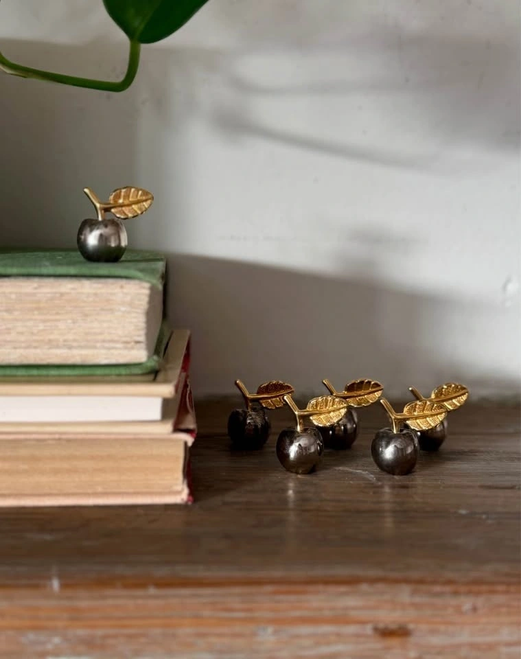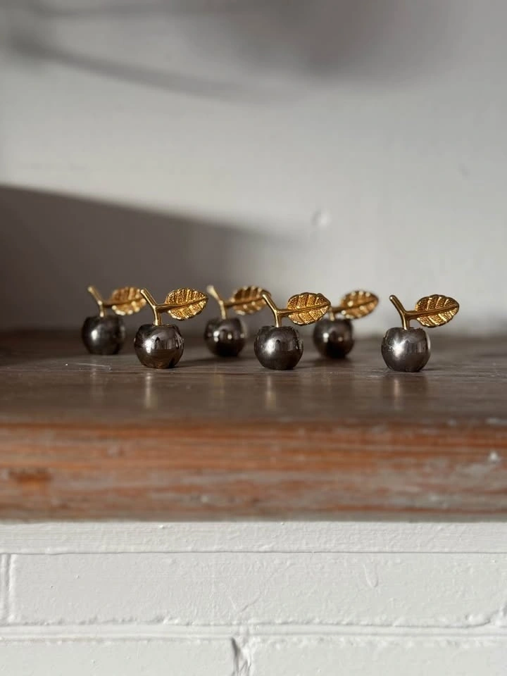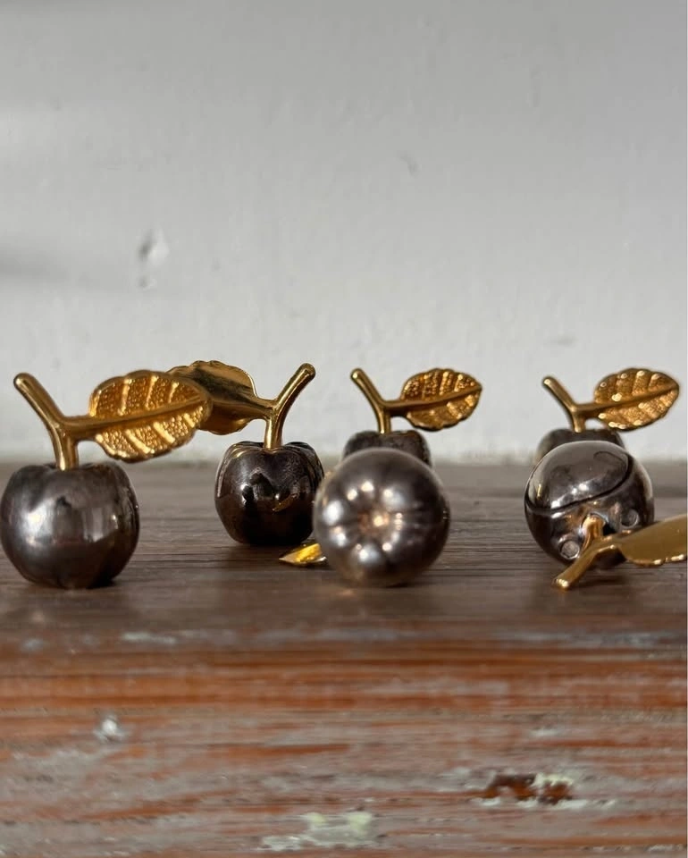 Enhance your dinner table with this elegant set of 6 vintage apple-shaped place card holders.