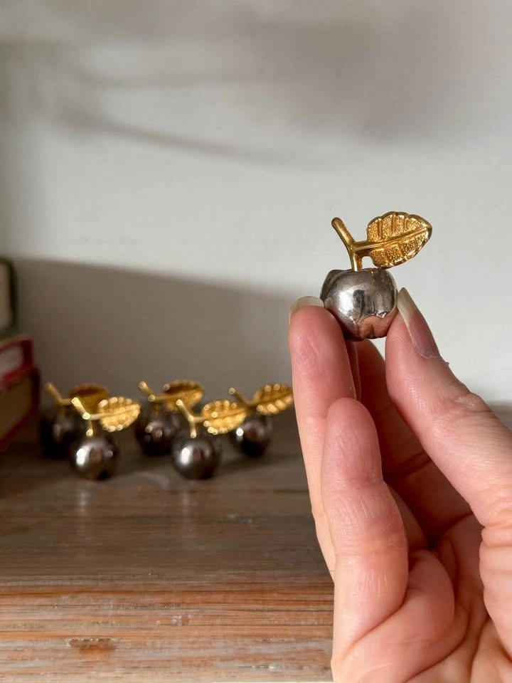 Vintage Silver & Gold Apple Place Card Holders - Set of 6