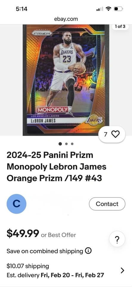 Basketball card from the 2023-24 Panini Prizm Monopoly set featuring LeBron James of the Los Angeles Lakers. This is a Brown Prizm parallel, card number 40, serial numbered out of 249. Sells for over $40 USD online.