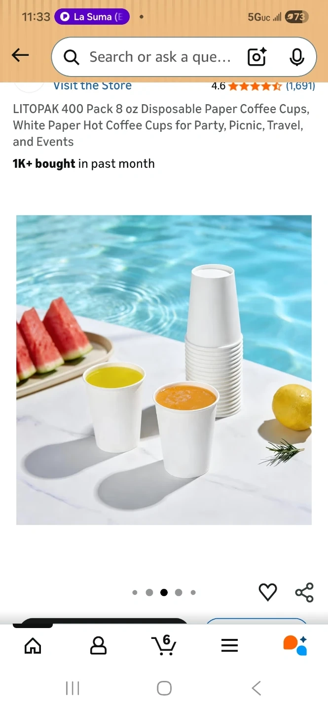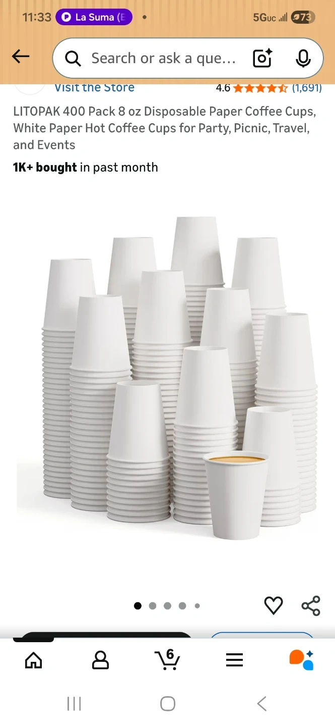 LITOPAK 400 Pack 8 oz White Disposable Paper Coffee Cups