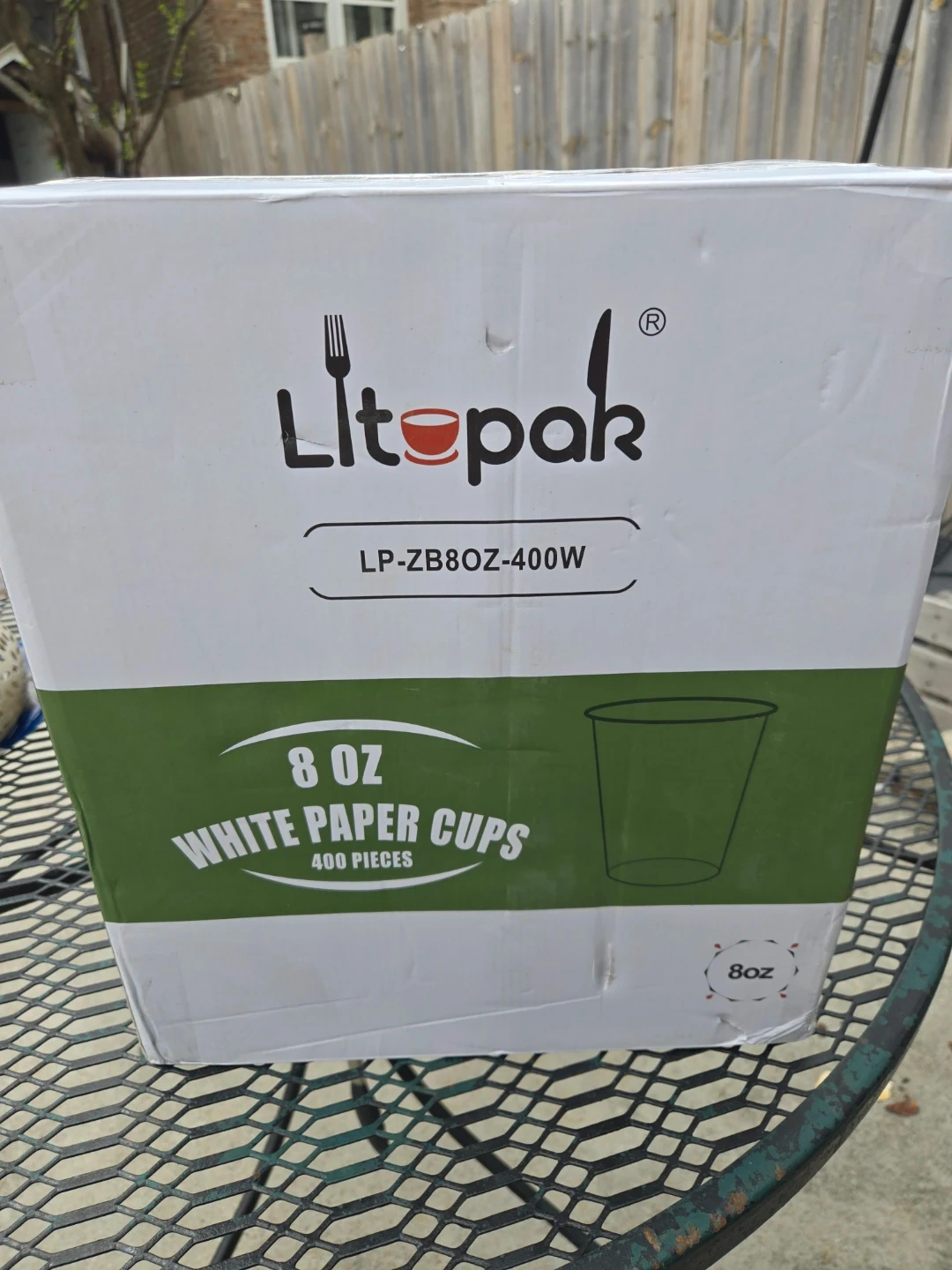 Get a 400-pack of 8 oz disposable white paper cups. These cups are great for coffee, parties, picnics, and travel! They're made of paper and hold 8 oz.