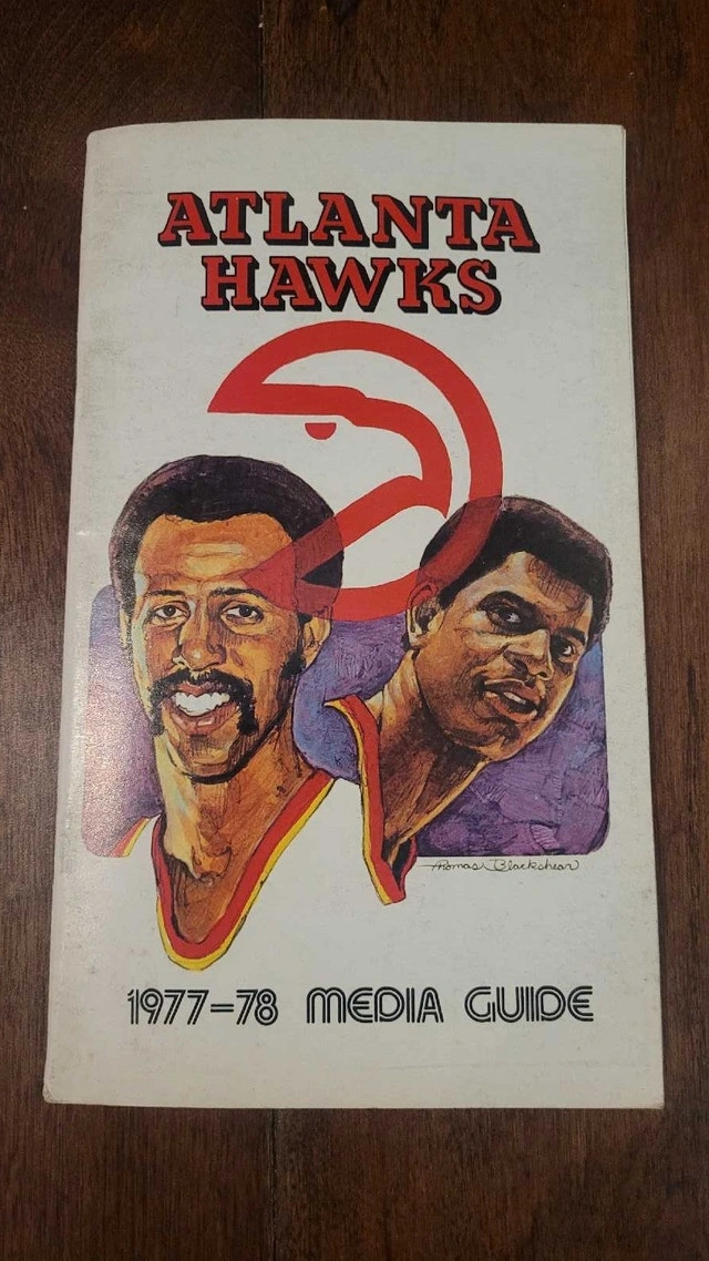 Vintage Atlanta Hawks 1977-78 Media Guide in fair condition. A cool piece of basketball history for any serious collector, offering insights into the team, players, and season highlights of that era. The cover shows some wear due to age, but it's in great condition overall. Selling for $20, pickup in the Lakeshore/Islington area. From a pet and smoke-free collection. Thanks for looking.