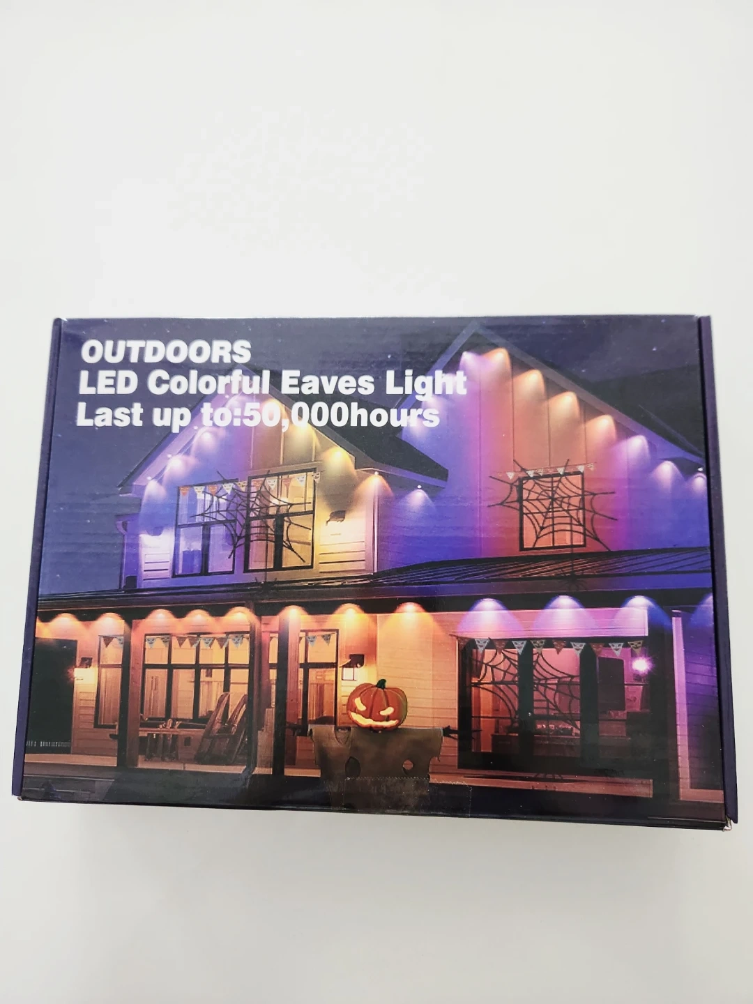 These outdoor eaves lights cast a colourful LED glow. They last up to 50,000 hours. Perfect for many kinds of celebrations!