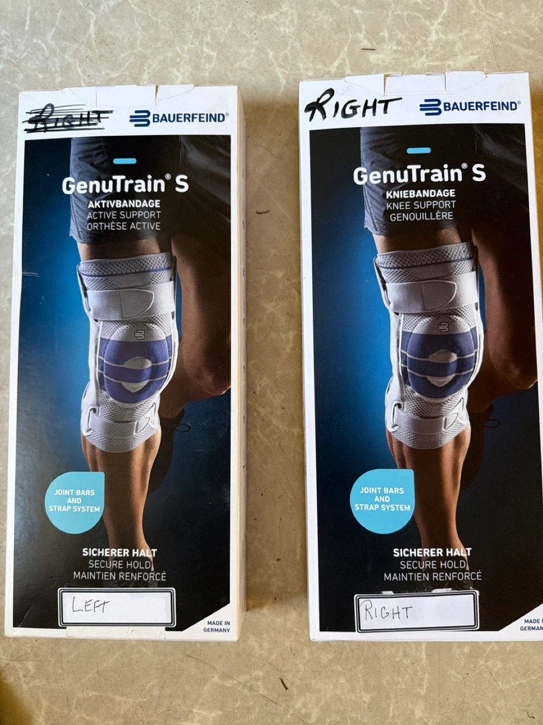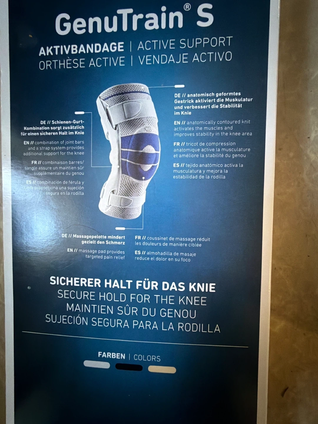 This Bauerfeind GenuTrain S knee brace offers active support. It features an anatomically contoured knit that activates muscles and improves stability. The massage pad provides targeted pain relief.