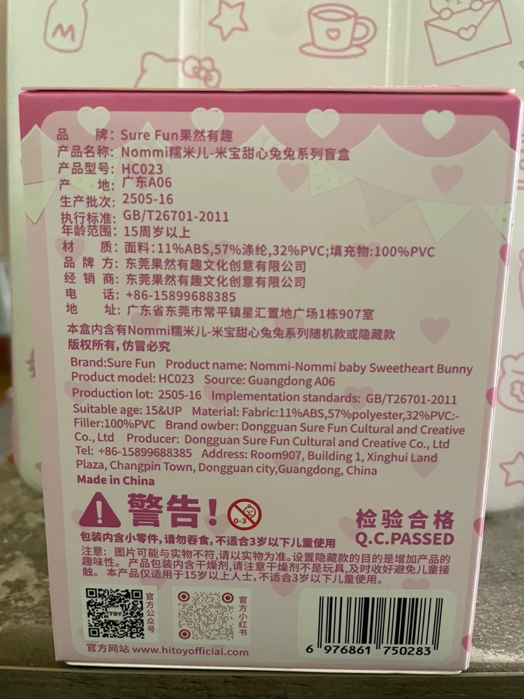It's a Nommi Baby Sweetheart Bunny blind box collectible. Suitable for ages 15 and up. Includes original box and packaging.