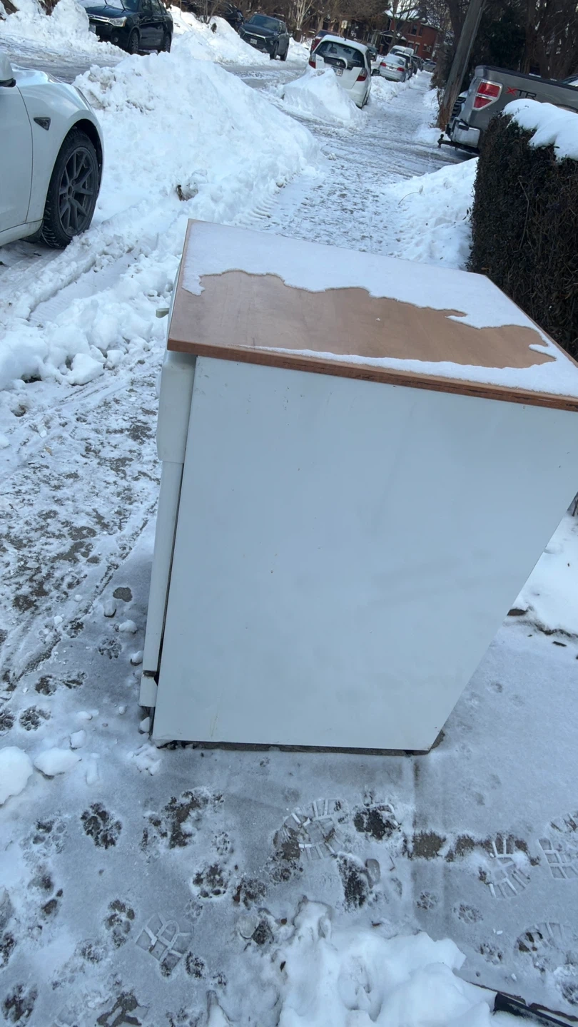 Selling a GE dishwasher. It's white with a wooden top. It has cycles and options available. I got it for $50 off Facebook marketplace but it can’t fit down my stair. So selling it $25.