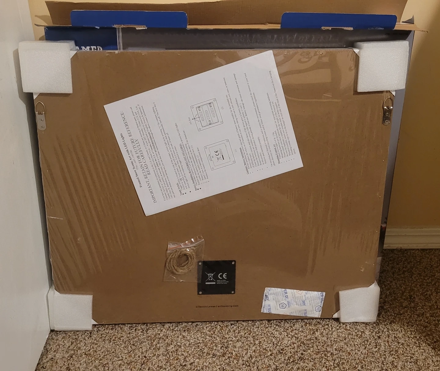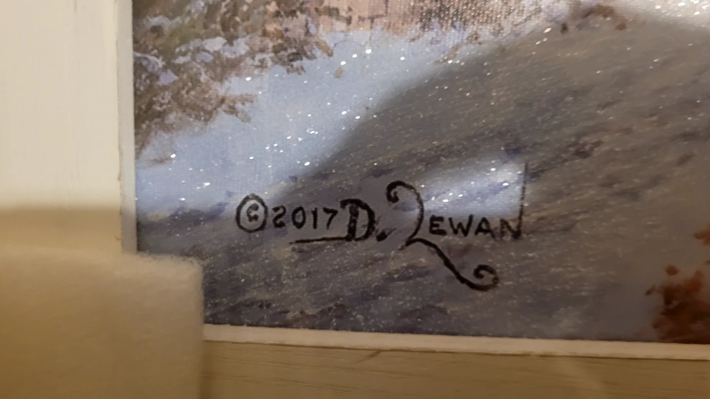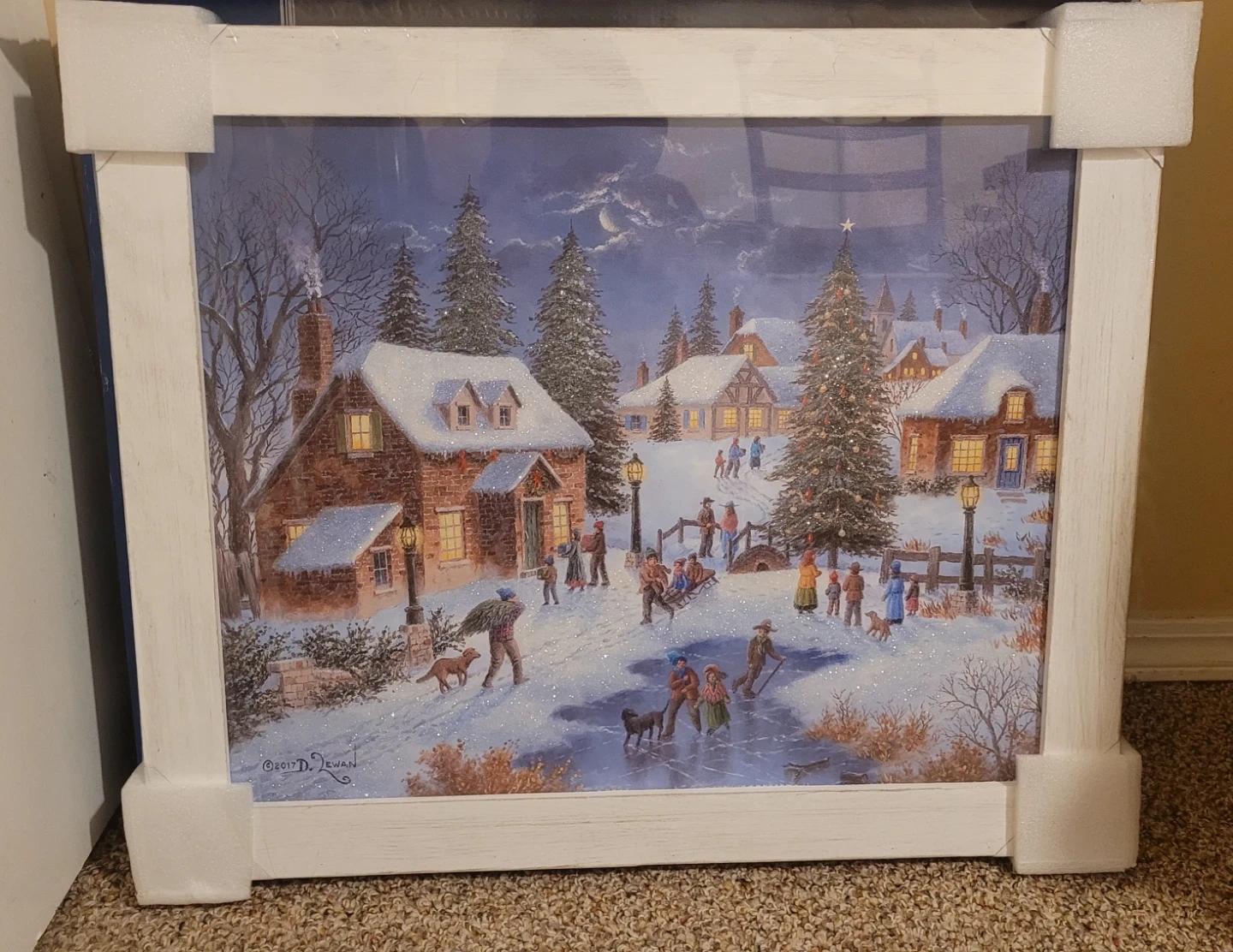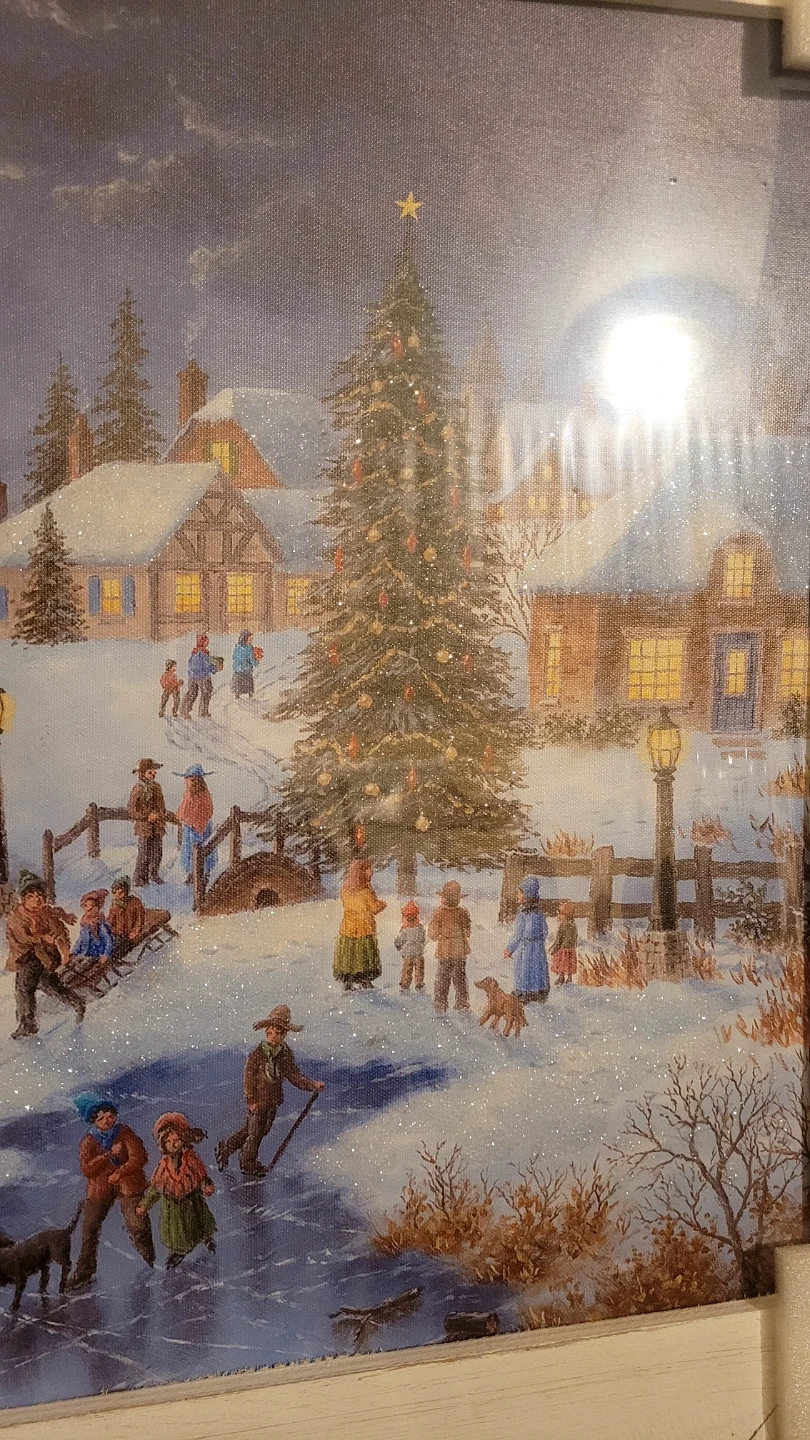 New in box LED light up snow scenic art. Doesn't come with batteries so haven't seen it lit. Looks nice as is but if someone wants to test to make sure it works before purchase they can.
