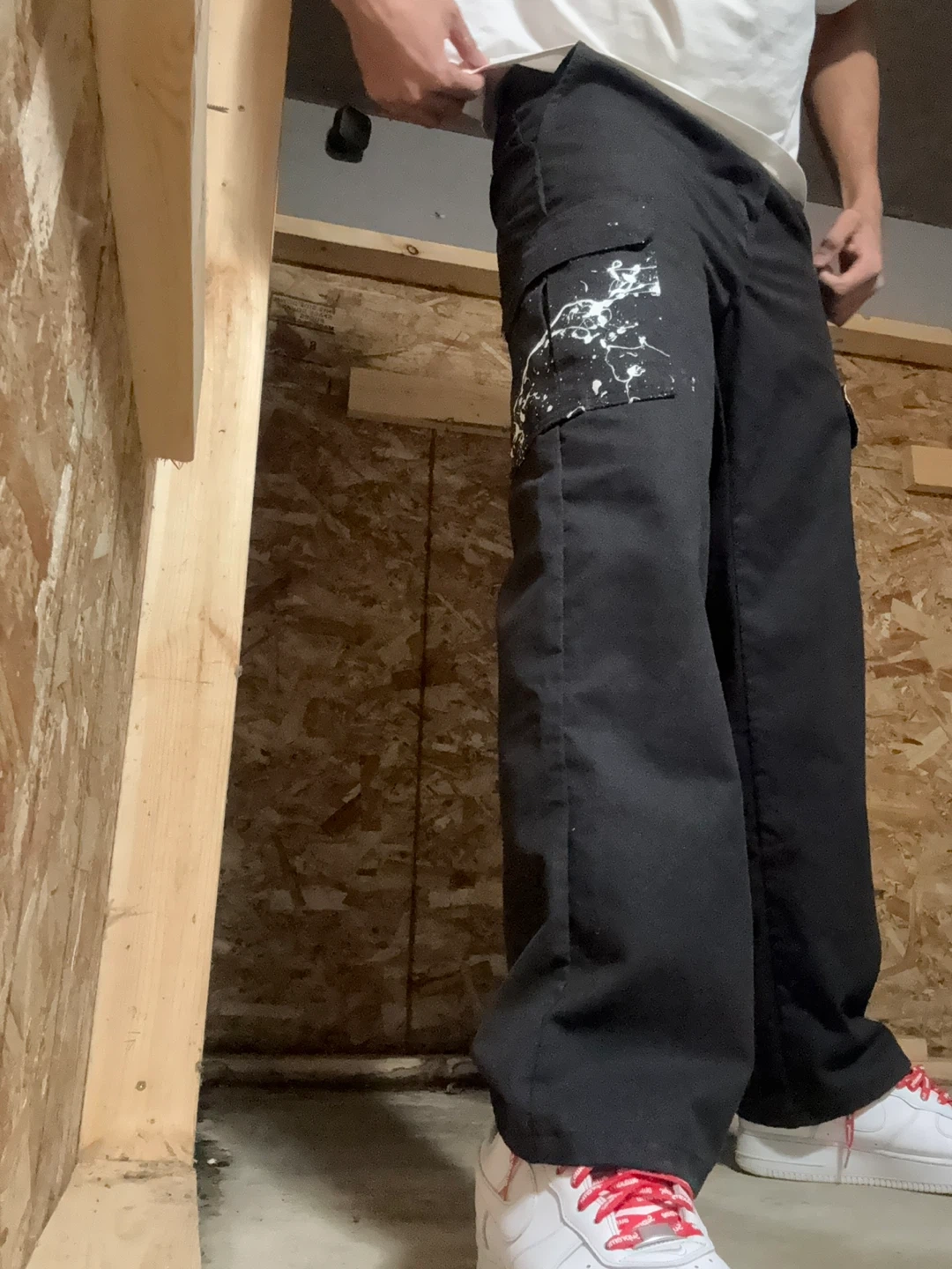 These custom cargo pants feature a stunning paint splatter design. I’ve received tons of compliments wearing this style.