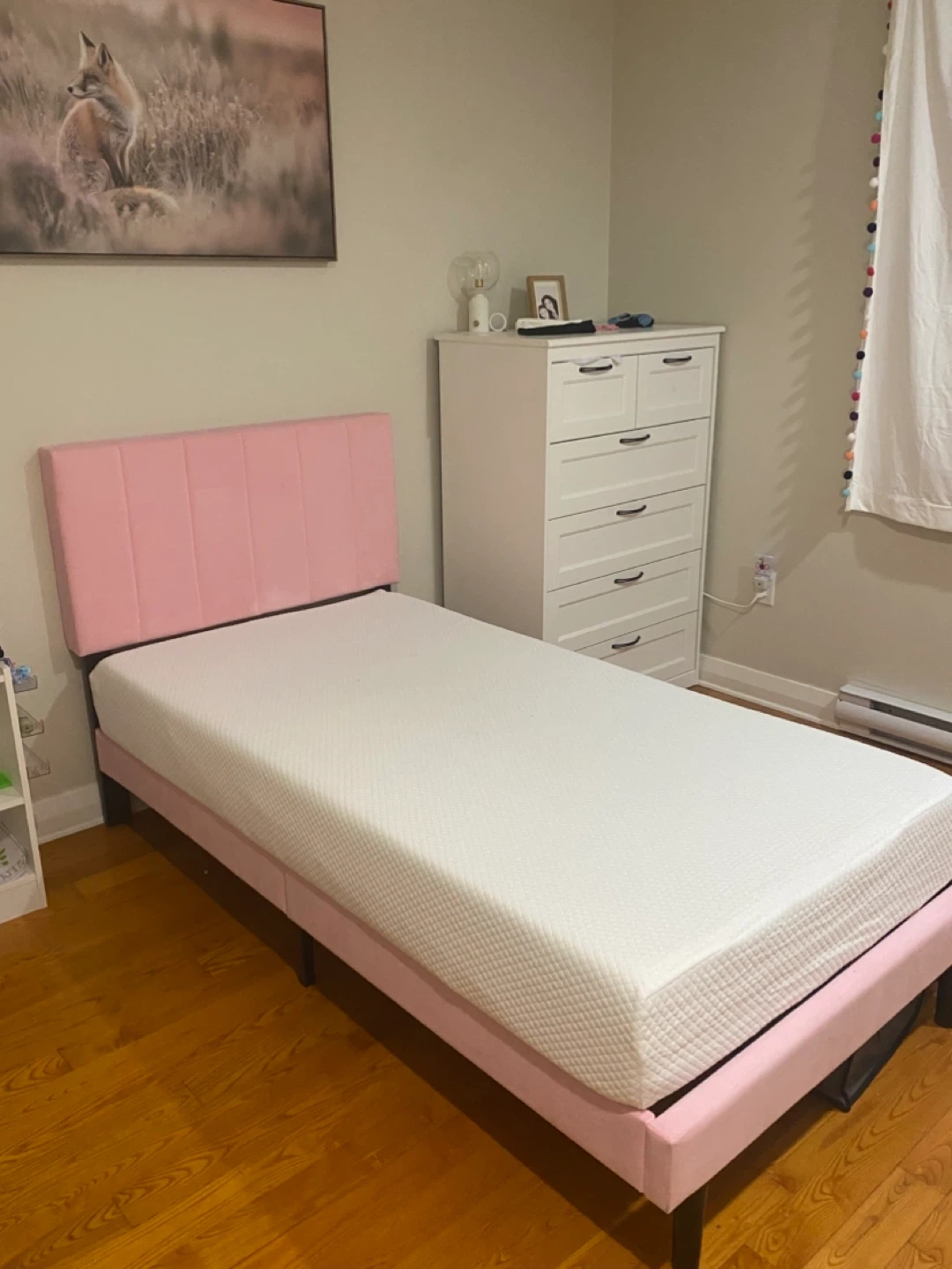 Pink Velvet Twin Bed Frame with Headboard and Mattress