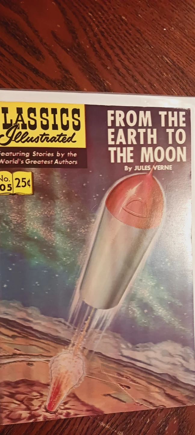 Collectible Vintage Comic Book. Classic Illustrated comic book issue #105, "From the Earth to the Moon" by Jules Verne. Features stories by the World's Greatest Authors. Published by Gilberton Company, Inc. Excellent condition. ALL MY PRICES ARE NEGOTIABLE !!