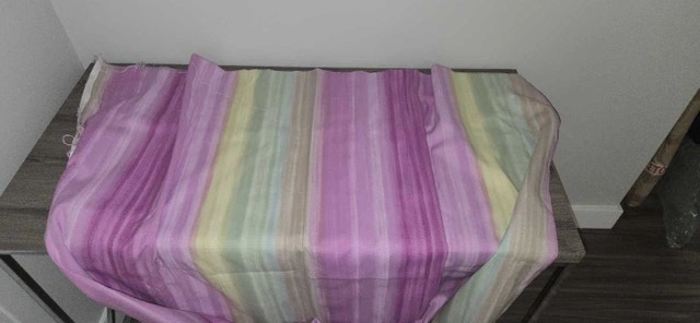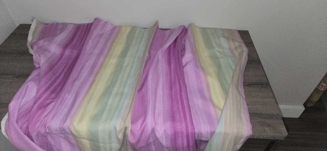 Beautiful thick fabric, originally purchased in Europe. Perfect for curtains or furniture, especially lovely for a child's room. Dimensions are 280 inches wide by 104 inches high (22.48 square yards). I believe it's a cotton weave or a blend. Similar fabrics retail for $20 per yard, with comparable pieces selling for $300-$400. Cash accepted. Please contact me to make an offer.