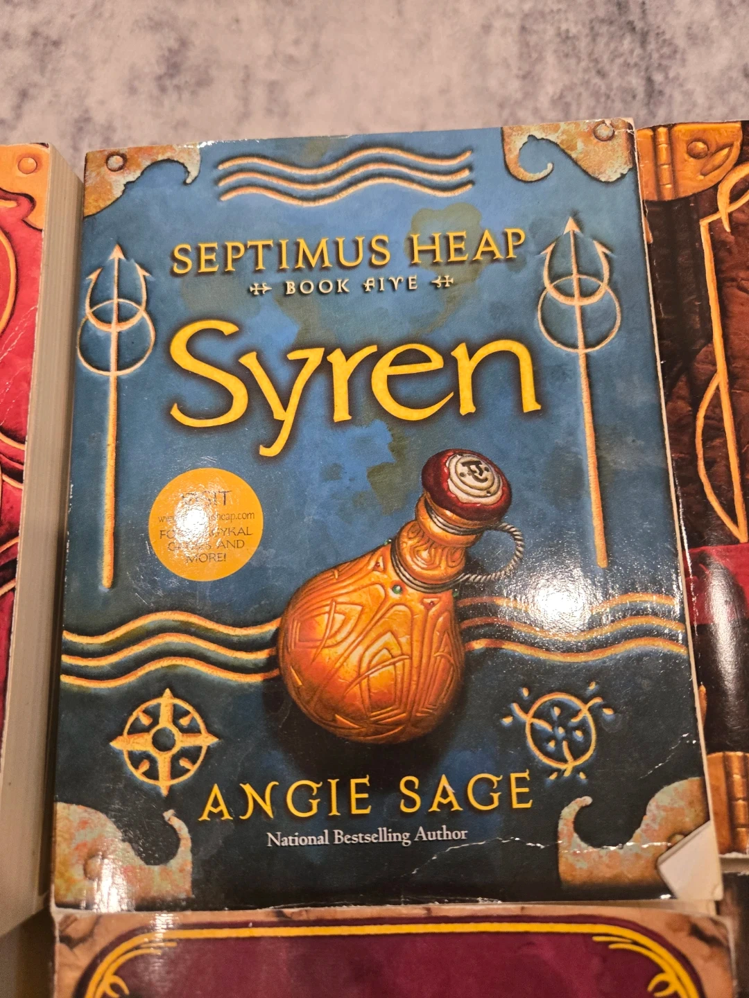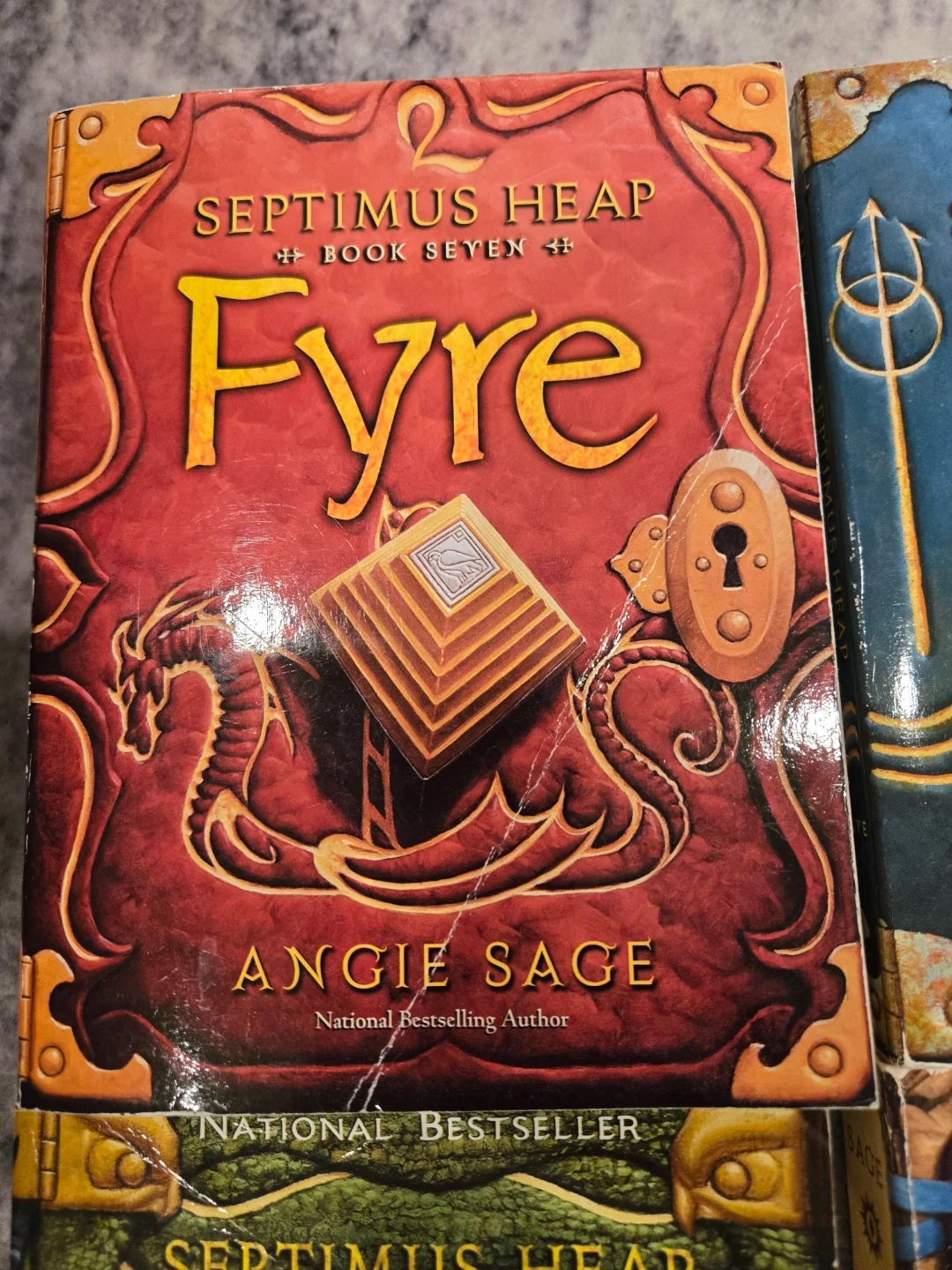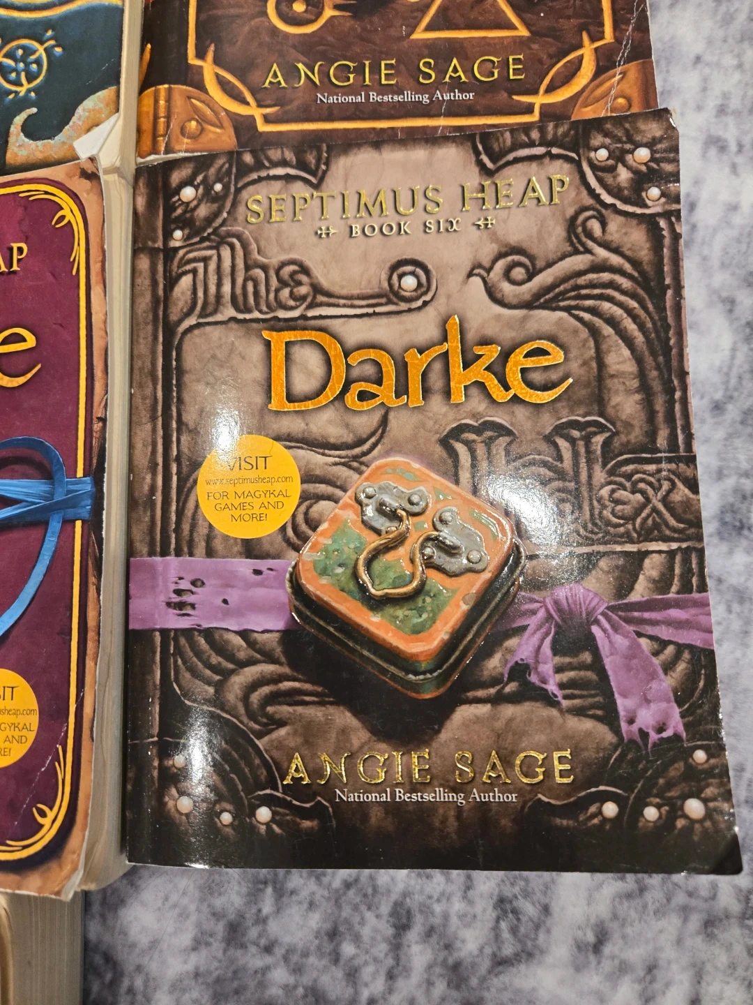 This is a collection of books from the Septimus Heap series by Angie Sage. Titles include Magyk, Flyte, Physik, Queste, Syren, Darke, and Fyre. These books are all National Bestsellers. Perfect for young fantasy readers!