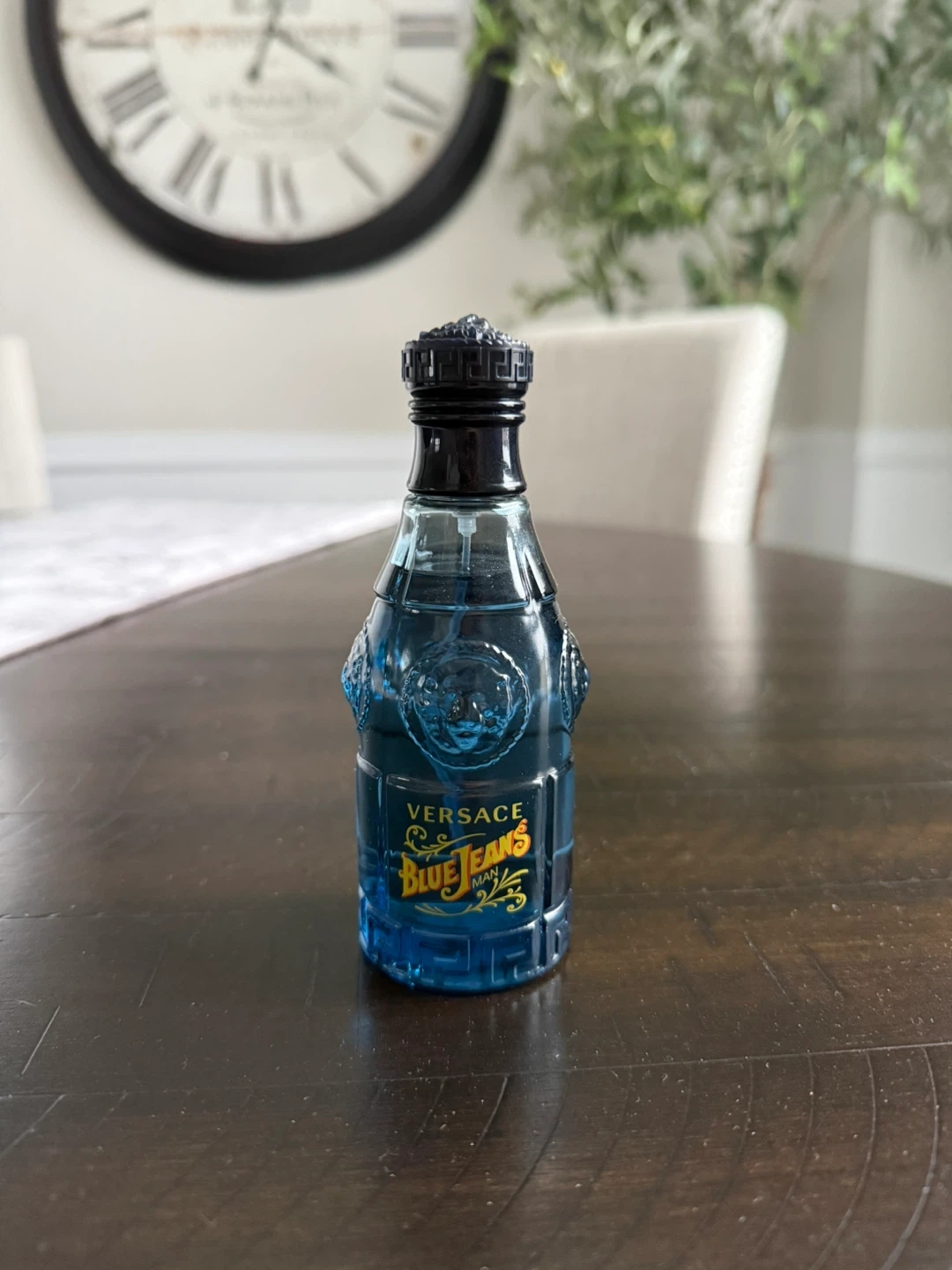 Selling a bottle of Versace Blue Jeans cologne for men. It's a classic scent that's perfect for everyday wear. The bottle is in great condition!