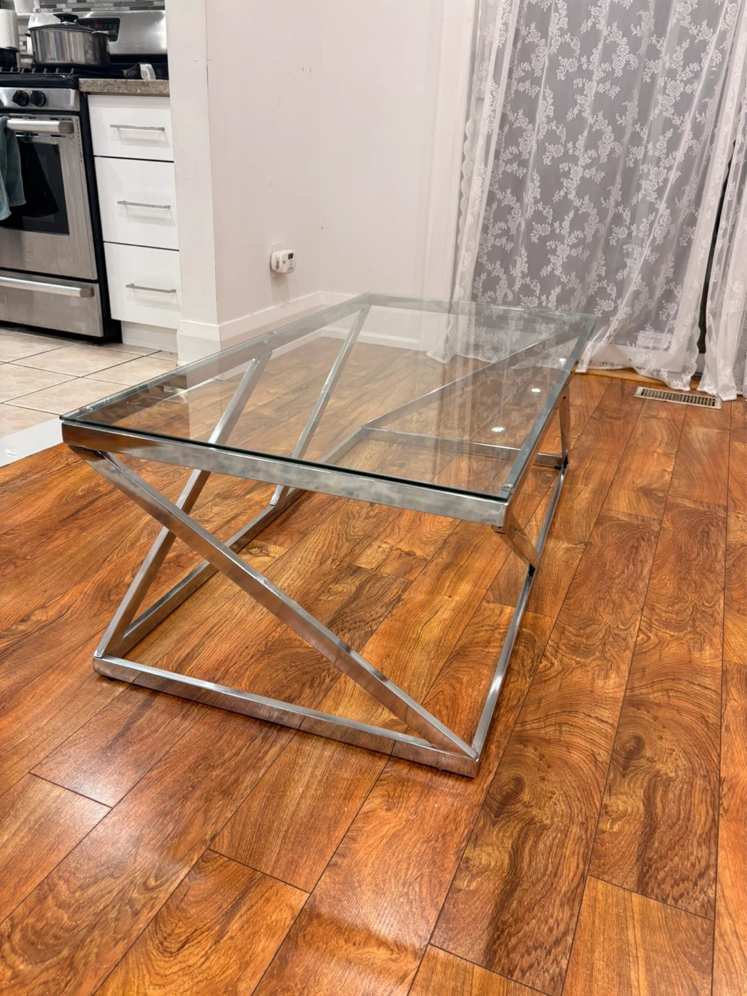 Glass Top Coffee Table with Chrome Base