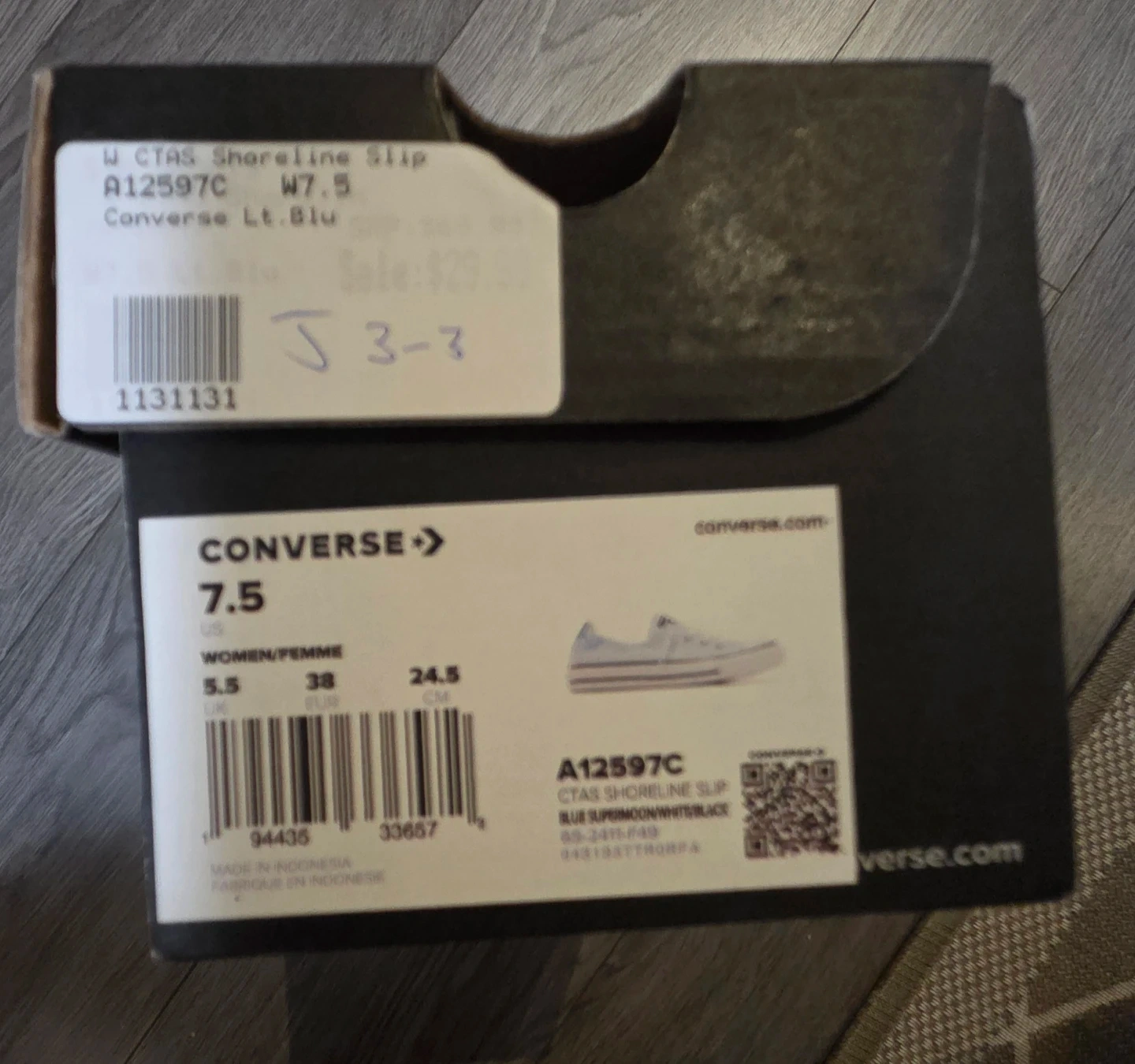 BNIB.These are Converse Shoreline Slip sneakers in a light blue colour. They're a women's size 7.5. Includes the original box.
