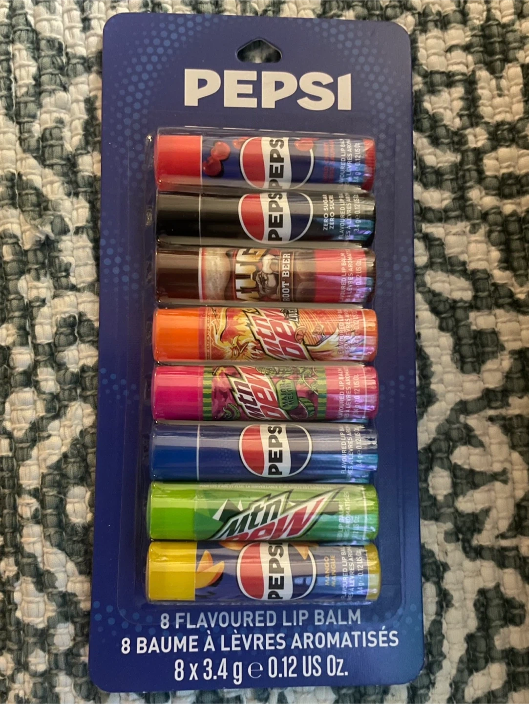 Sealed 8-Pack Lip Balm, in various flavours such as: Pepsi, Cherry Pepsi, Mango Pepsi, Mountain Dew & Mug Root Beer.