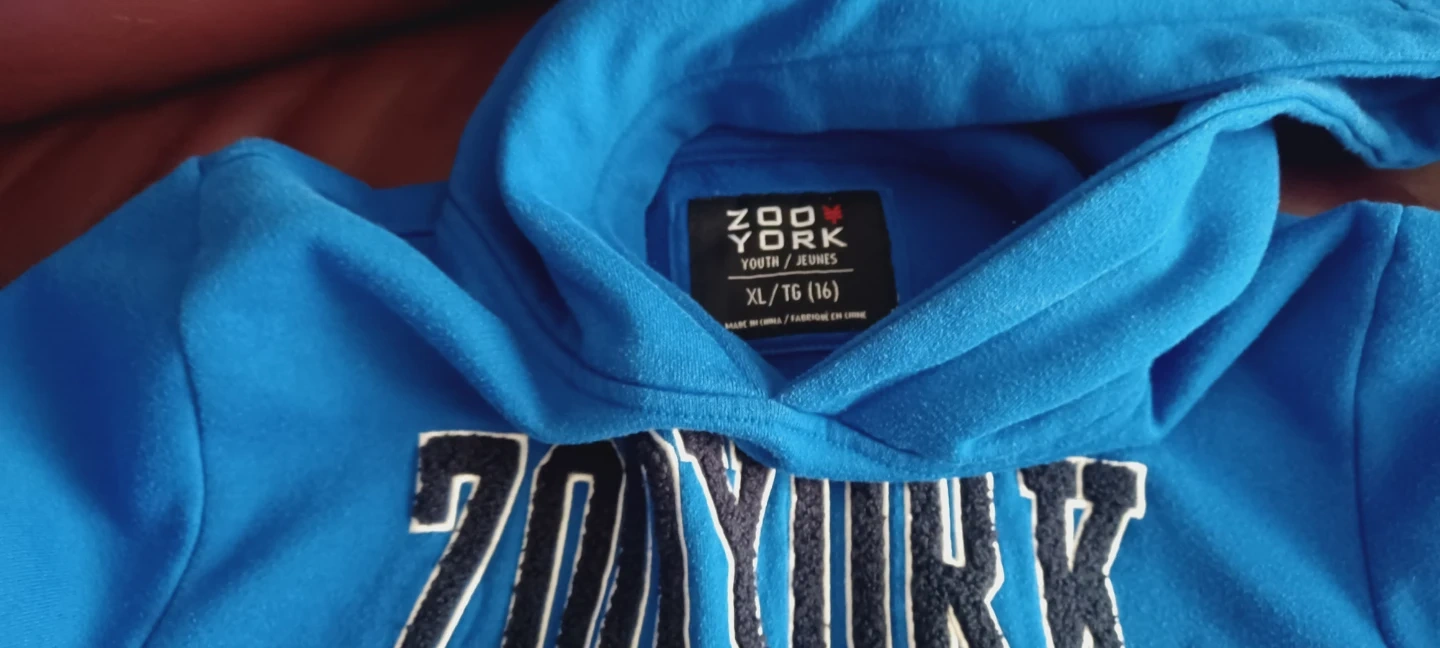 Zoo York youth hoodie, size XL (16). Comes in blue, red, and grey. It's a comfortable pullover style with a front ,